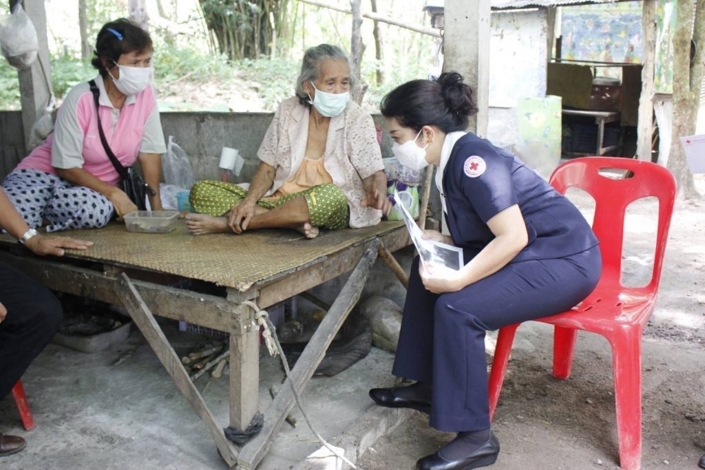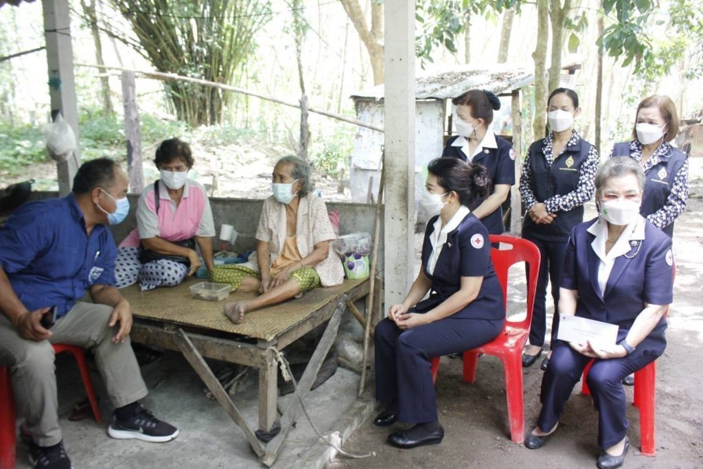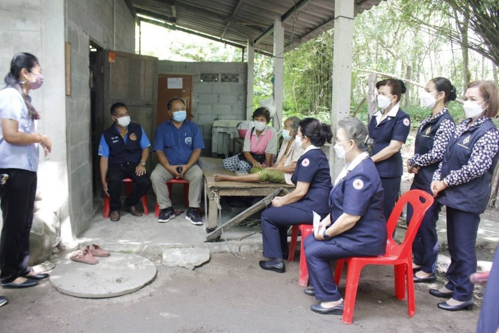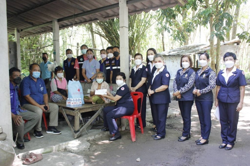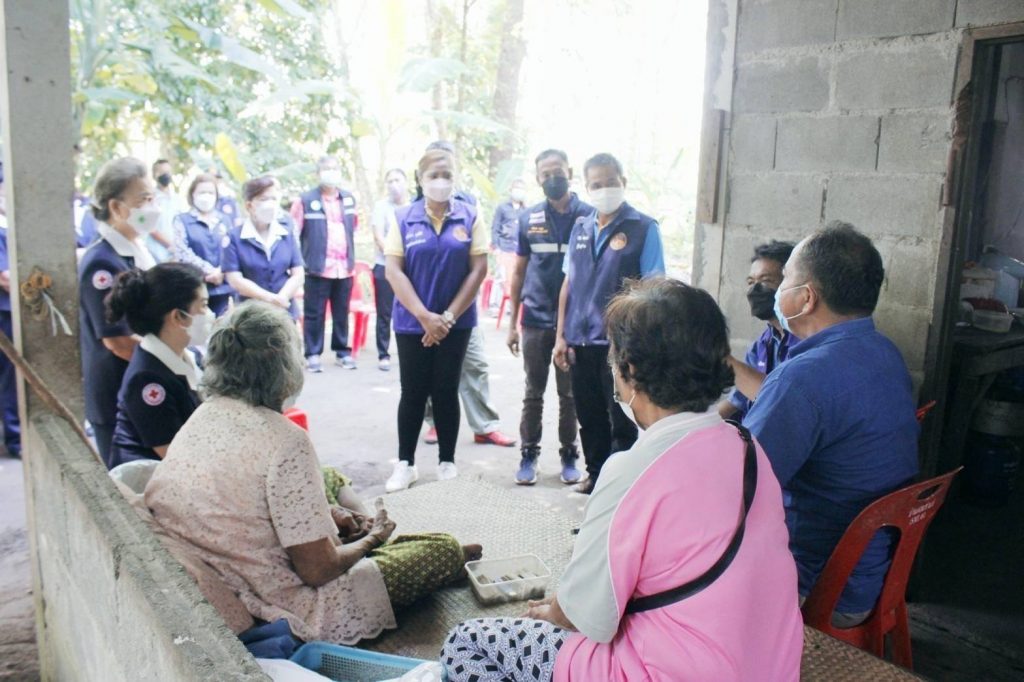 พร้อมด้วย กรรมการเหล่ากาชาดจังหวัดสุราษฎร์ธานี สมาชิกเหล่ากาชาดจังหวัดสุราษฎร์ธานี และสมาชิกชมรมแม่บ้านมหาดไทยจังหวัดสุราษฎร์ธานี ร่วมลงพื้นที่เยี่ยมและให้กำลังใจประชาชนกลุ่ม 608 และกลุ่มเปราะบาง ในราย นางโอบ ประดับ อายุ 83 ปี บ้านเลขที่ 17 หมู่ที่ 1 ตำบลทรัพย์ทวี อำเภอบ้านนาเดิม จังหวัดสุราษฎร์ธานี มีโรคประจำตัว ปวดชาบริเวณขาและความดันโลหิตสูง ในการนี้ เหล่ากาชาดจังหวัดฯชมรมแม่บ้านมหาดไทยจังหวัดฯ ได้มอบเงินช่วยเหลือ จำนวน 3,000 บาท พร้อมด้วยถุงยังชีพ จำนวน 1 ถุง และน้ำดื่ม จำนวน 1 แพ็ค