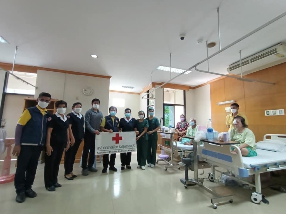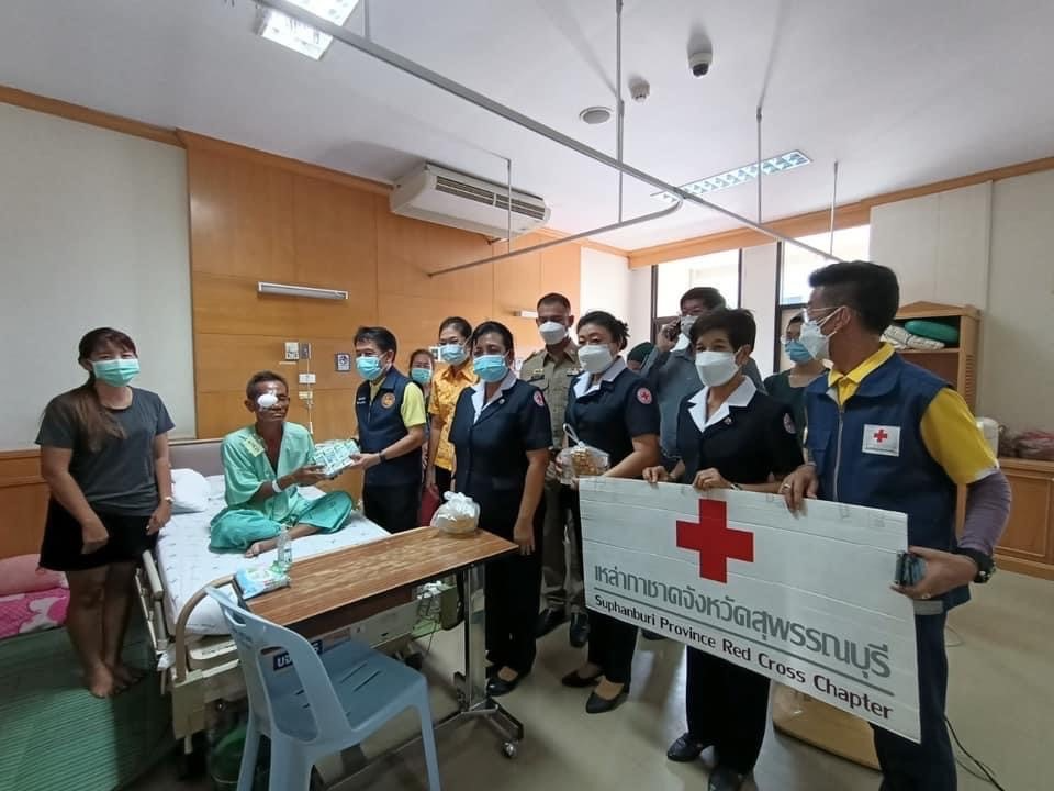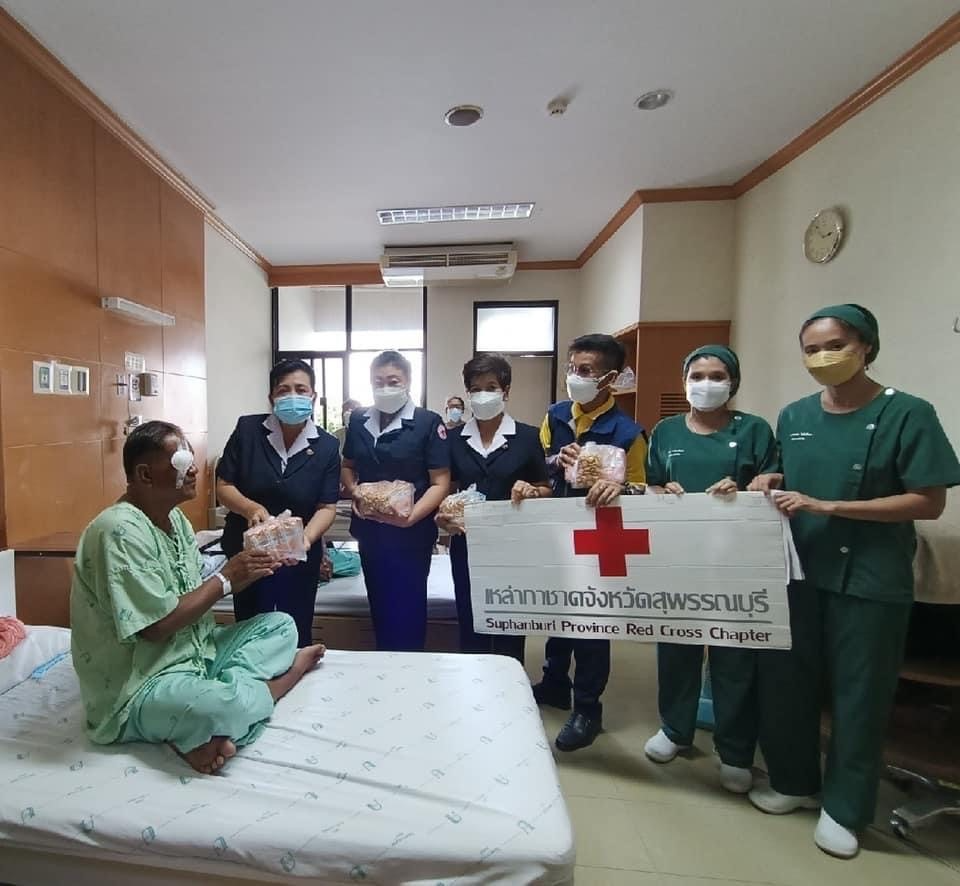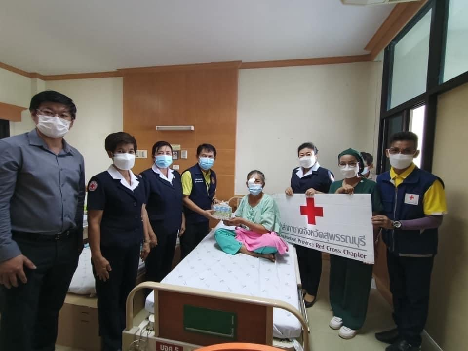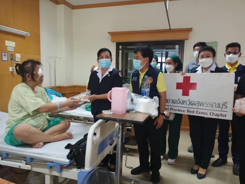 วันที่ 30 พฤษภาคม 2565 นายณัฐภัทร สุวรรณประทีป ผู้ว่าราชการจังหวัดสุพรรณบุรี นางนภัสสร สุวรรณประทีป นายกเหล่ากาชาดจังหวัดสุพรรณบุรี นางจิตรลดา นวมทอง รองนายกเหล่ากาชาดจังหวัด พร้อมด้วยกรรมการเหล่ากาชาดจังหวัด เยี่ยมให้กำลังใจ ผู้ที่เข้ารับการผ่าตัดเปลี่ยนเลนส์ต้อกระตก ตามโครงการผ่าตัดเปลี่ยนเลนส์ตาต้อกระจก ซึ่งได้รับการสนับสนุนโครงการโดย คณะนักศึกษาวิทยาลัยป้องกันราชอาณาจักร รุ่นที่ 58 ร่วมกับมูลนิธิพิทักษ์ดวงตา (ชัยภูมิ) โดยเหล่ากาชาดจังหวัดสุพรรณบุรี มอบนมและขนม จำนวน 70 ราย ณ โรงพยาบาลอู่ทอง อ.อู่ทอง จ.สุพรรณบุรี