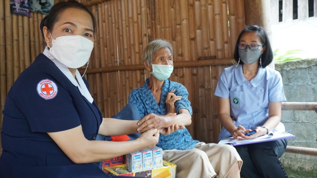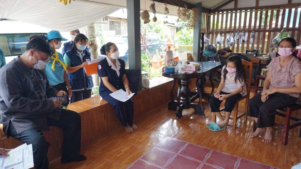 – เวลา 13.00 น. คณะฯ ร่วมกับนายพรพิษณุ จันสวัสดิ์ นายอำเภอสองแคว ปลัดอาวุโสอำเภอสองแคว เจ้าหน้าที่สาธารณสุขอำเภอสองแคว หัวหน้าพัฒนาการอำเภอสองแคว เจ้าหน้าที่ท้องที่ อสม.ในพื้นที่อำเภอสองแคว เยี่ยมติดตามความเป็นอยู่และรับฟังปัญหาด้านต่างๆ ของผู้ป่วยในพระราชานุเคราะห์ฯ จำนวน 2 ราย และผู้ยากไร้ จำนวน 2 ราย พร้อมกันนี้เหล่ากาชาดจังหวัดน่านยังได้มอบถุงยังชีพแก่อำเภอสองแควเพื่อนำไปช่วยเหลือผู้ยากไร้ในพื้นที่อำเภอสองแคว จำนวน 40 ชุด