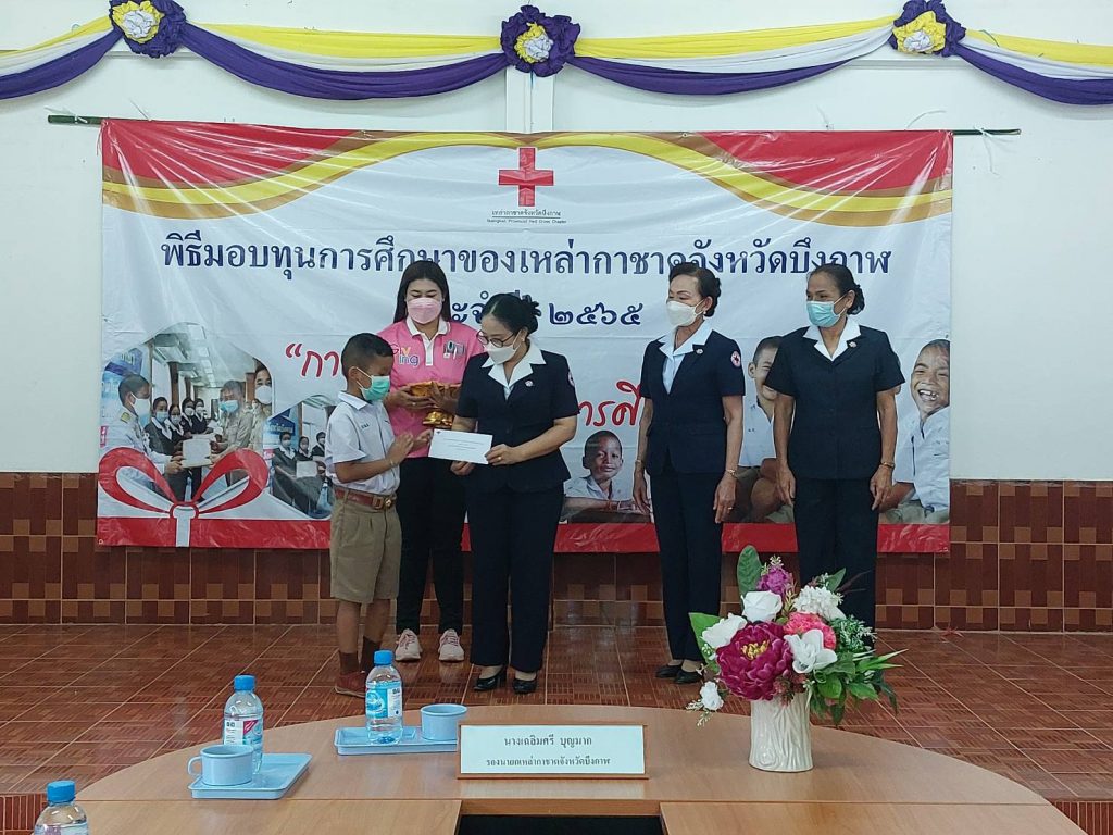 วันที่ 7 มิถุนายน 2565 นายสนิท ขาวสอาด ผู้ว่าราชการจังหวัดบึงกาฬ/นายกเหล่ากาชาดจังหวัดบึงกาฬ มอบหมายให้ นางเฉลิมศรี บุญมาก รองนายกเหล่ากาชาดจังหวัดบึงกาฬ นางคำหมุน ยอดเทพ รองนายกเหล่ากาชาดจังหวัดบึงกาฬ ร่วมด้วยนายพุทธภูมิ นาชัยเริ่ม นายอำเภอพรเจริญ นายคมกฤต บุญทอง นายอำเภอบุ่งคล้า กรรมการและสมาชิกเหล่ากาชาดอำพรเจริญ /อำเภอเซกา/อำเภอบึงโขงหลง /อำเภอบุ่งคล้า