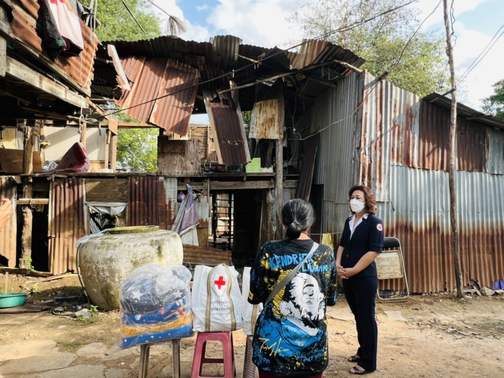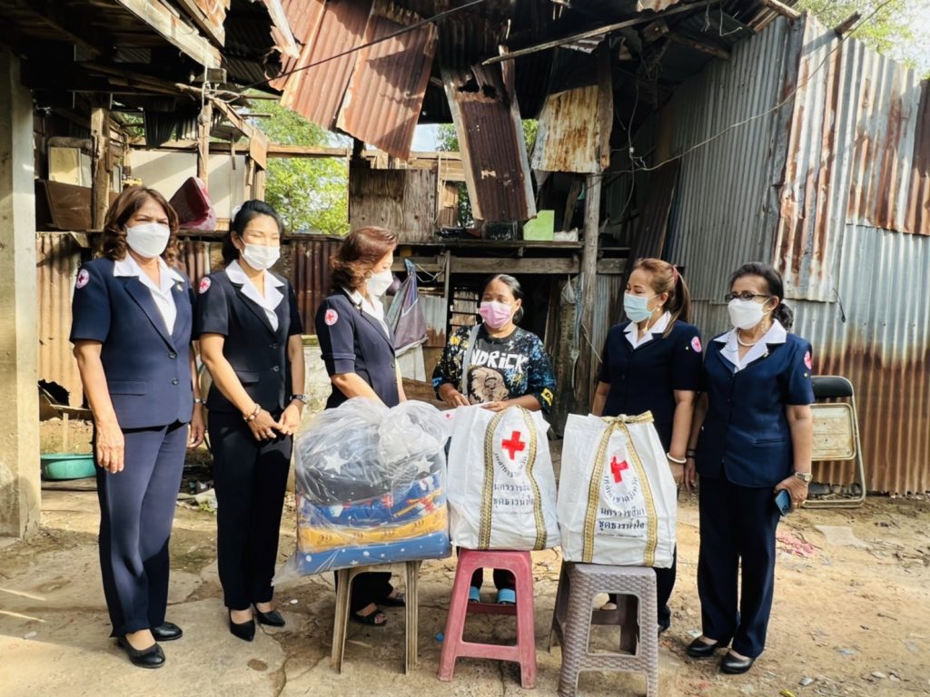 วันที่ 23 พฤษภาคม 2565 นางณัฏฐินีภรณ์ จันทรโณทัย นายกเหล่ากาชาดจังหวัดนครราชสีมา พร้อมด้วยที่ปรึกษา คณะกรรมการและสมาชิกเหล่ากาชาดจังหวัดนครราชสีมา ลงพื้นที่มอบเงิน ถุงยังชีพ และผ้าห่มให้กับผู้ประสบเหตุวาตภัย ราย น.ส.สดใส ของสันเทียะ ณ บ้านเลขที่ 1336 ถ.มิตรภาพ ต.ในเมือง อ.เมืองนครราชสีมา จ.นครราชสีมา