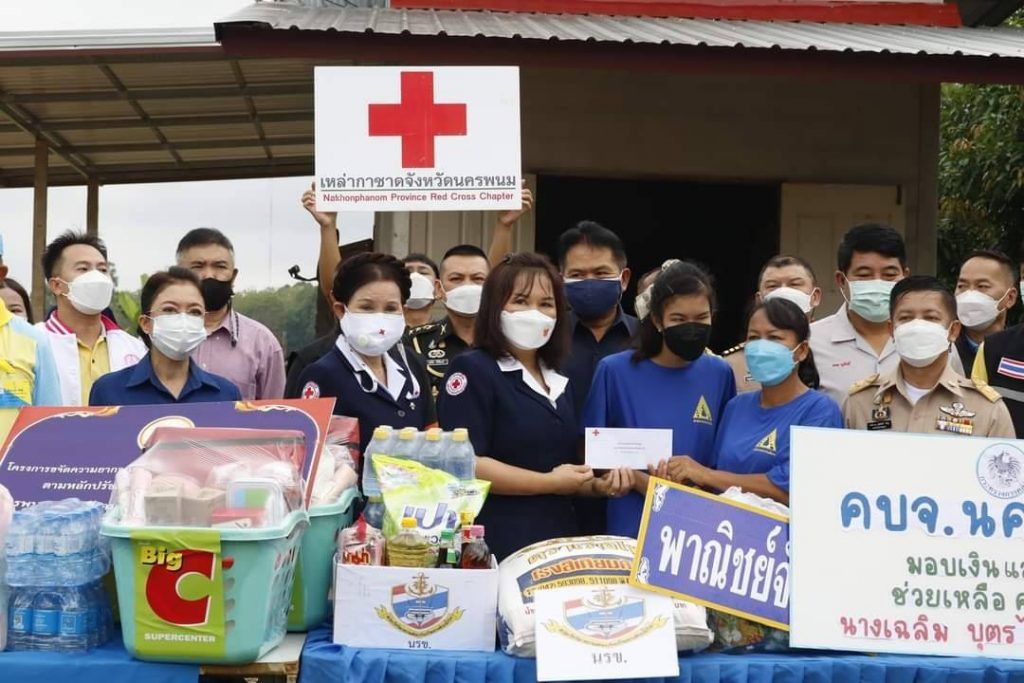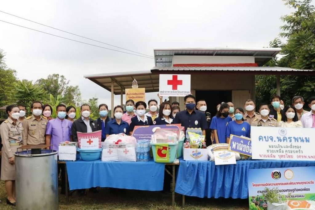 แก่ ครอบครัว นางเฉลิม บุตรไชย อายุ 49 ปี ณ บ้านเลขที่ 122 หมู่ที่ 2 บ้านหนองย่างชิ้น ตำบลหนองย่างชิ้น อำเภอเรณูนคร จังหวัดนครพนม ผู้ยากจน มีอาชีพรับจ้างทั่วไป สามีเสียชีวิต ปัจจุบันอาศัยอยูู่กับบุตรสาววัย 15 ปี ที่มีความพิการทางการมองเห็น ในโอกาสนี้เหล่ากาชาดจังหวัดนครพนม มอบเครื่องอุปโภคบริโภคและเครื่องใช้จำเป็นในการดำรงชีพ มูลค่า 2,000 บาท