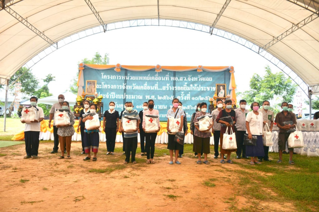 วันที่ 17 มิถุนายน 2565 นางนงค์นิตย์ เนียมศิริ นายกเหล่ากาชาดจังหวัดเลย พร้อมด้วยนางขนิษฐา พินิจพานิชย์ รองนายกเหล่ากาชาดจังหวัดเลย , นายศิริวัฒน์ พินิจพานิชย์ ปลัดจังหวัดเลย/เลขานุการเหล่ากาชาดจังหวัดเลย กรรมการเหล่ากาชาดจังหวัดเลย และหัวหน้าส่วนราชการ ผู้แทนจากภาคส่วนต่างๆ ร่วมโครงการหน่วยแพทย์เคลื่อนที่ พอ.สว.จังหวัดเลย และโครงการจังหวัดเคลื่อนที่….สร้างรอยยิ้มให้ประชาชนชาวจังหวัดเลย ประจำปีงบประมาณ 2565 ครั้งที่ 10/2565 ณ โรงเรียนบ้านวังยาว ม.2 ต.นาแขม อ.เมืองเลย จ.เลย โดยมีนายชัยธวัช เนียมศิริ ผู้ว่าราชการจังหวัดเลย เป็นประธาน ในการนี้ เหล่ากาชาดจังหวัดเลย นำถุงเครื่องอุปโภค บริโภค จำนวน 50 ชุด เสื้อกันหนาว จำนวน 50 ตัว ไปมอบให้แก่ราษฎรกลุ่มเปราะบางในสังคม ผู้สูงอายุ ผู้ยากไร้ และผู้ด้อยโอกาส ในพื้นที่ตำบลนาแขม อำเภอเมืองเลย จังหวัดเลย พร้อมออกหน่วยรับบริจาคดวงตา และอวัยวะ มีประชาชนร่วมบริจาคดวงตา จำนวน 8 ราย และบริจาคอวัยวะ จำนวน 8 ราย