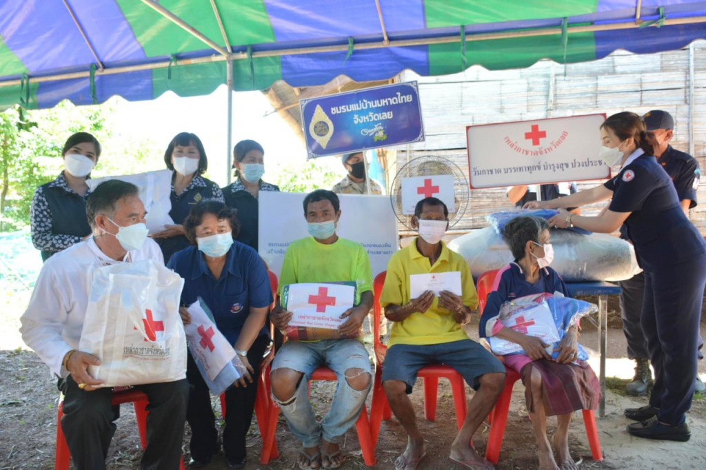 เหล่ากาชาดจังหวัดเลย มอบเงินช่วยเหลือเบื้องต้น รายละ 1,000 บาท รวมเป็น จำนวน 2,000 บาท และถุงเครื่องอุปโภคบริโภค มุ้ง ผ้าเช็ดตัวผ้าห่ม ผ้าห่ม พัดลม หมอน สิ่งของที่จำเป็น ให้กับแก่กลุ่มเปราะบางทั้ง 2 รายดังกล่าว
