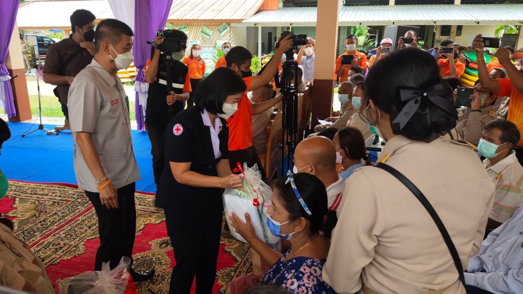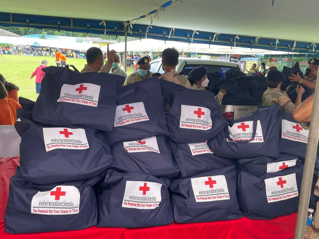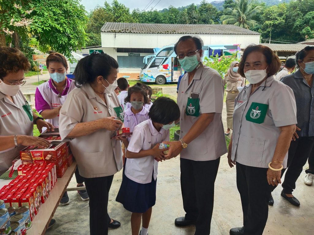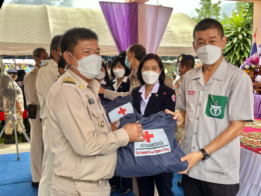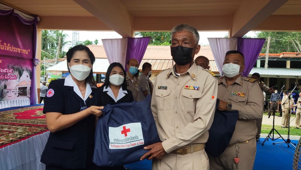 วันที่ 23 มิถุนายน 2565 นางละมัย เจริญโสภา นายกเหล่ากาชาดจังหวัดตรัง พร้อมด้วยคณะกรรมการ และสมาชิกเหล่ากาชาดจังหวัดตรัง ร่วมโครงการ “หน่วยบำบัดทุกข์ บำรุงสุข สร้างรอยยิ้มให้ประชาชน” จังหวัดตรัง และร่วมออกหน่วยแพทย์เคลื่อนที่ พอ.สว. ออกให้บริการประชาชน ออกให้บริการประชาชน ณ โรงเรียนบ้านเขาหลัก ต.น้ำผุด อ.เมืองตรัง จ.ตรัง โดยมีนายขจรศักดิ์ เจริญโสภา ผู้ว่าราชการจังหวัดตรัง เป็นประธานในพิธี ในการนี้ เหล่ากาชาดจังหวัดตรัง มอบเครื่องอุปโภคบริโภคให้ผู้สูงอายุ ผู้พิการ และผู้ป่วยติดเตียง จำนวน 100 ชุด มอบแว่นสายตาให้ผู้สูงวัยและผู้ยากไร้จำนวน 208 อัน และมอบนมและขนมให้เด็กในพื้นที่