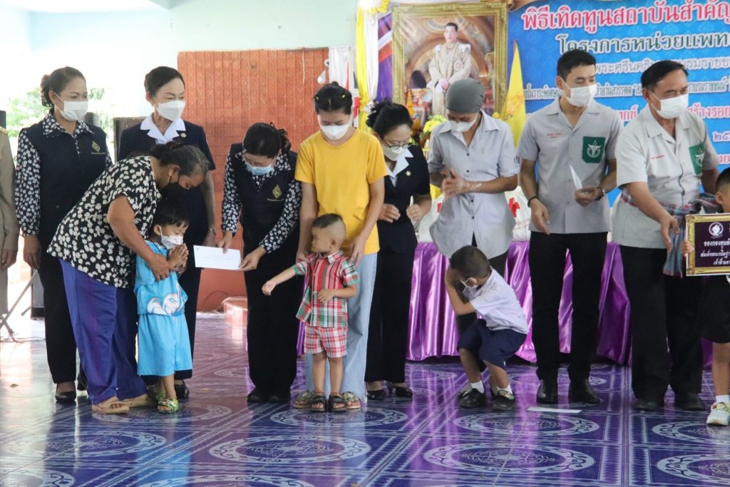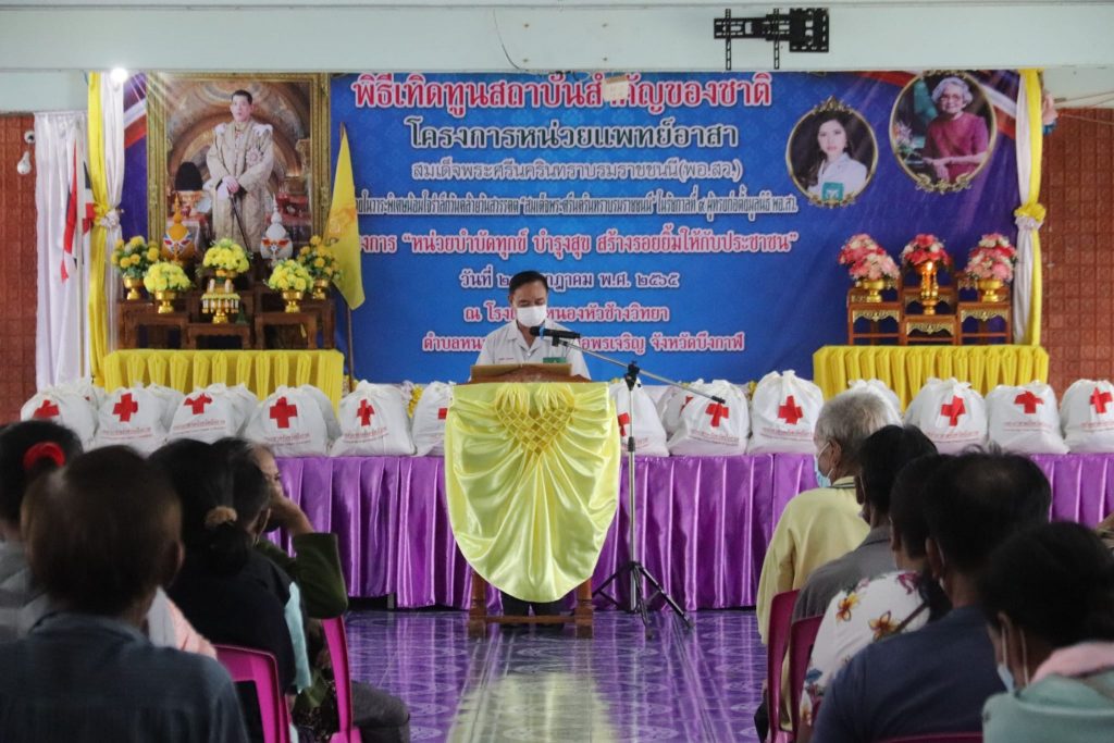 วันที่ 21 กรกฎาคม 2565 นายสนิท ขาวสอาด ผู้ว่าราชการจังหวัดบึงกาฬ นายกเหล่ากาชาดจังหวัดบึงกาฬ มอบหมายให้ นางเฉลิมศรี บุญมาก รองนายกเหล่ากาชาดจังหวัดบึงกาฬ นางคำหมุน ยอดเทพ รองนายกเหล่ากาชาดจังหวัดบึงกาฬพร้อมด้วย หน่วยแพทย์อาสา สมเด็จพระศรีนครินทราบรมราชชนนี (พอ.สว.) หัวหน้าส่วนราชการ ข้าราชการ ประชาชน ร่วมโครงการ “ปกป้องและเชิดชูสถาบันพระมหากษัตริย์ และหน่วยบำบัดทุกข์ บำรุงสุข สร้างรอยยิ้มให้ประชาชนจังหวัดบึงกาฬ” ประจำปีงบประมาณ 2565 พร้อมทั้งมอบถุงยังชีพให้แก่ผู้ยากไร้ ผู้พิการ และผู้ด้อยโอกาส จำนวน 150 ราย ณ โรงเรียนหนองหัวช้างวิทยา อำเภอพรเจริญ จังหวัดบึงกาฬ โดยมีนายนพดล จอมเพชร ปลัดจังหวัดบึงกาฬเป็นประธาน