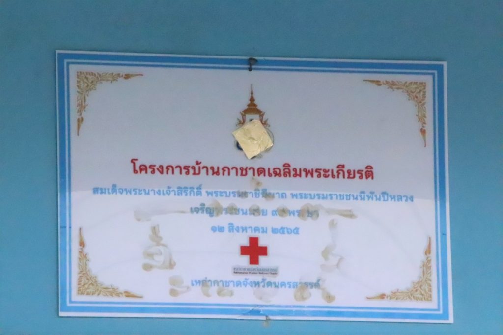 โดยส่งมอบบ้านกาชาดฯ ให้กับนายเขียว มั่นทุกะ อายุ 65 ปี ณ หมู่ที่ 1 ตำบลโพธิ์ประสาท อำเภอไพศาลี จังหวัดนครสวรรค์ ซึ่งเป็นผู้ด้อยโอกาส ยากไร้ ในพื้นที่อำเภอไพศาลี ไม่มีบ้านเป็นของตนเองต้องอาศัยศาลานั่งพักของบ้านพี่ชาย และใช้ห้องน้ำของบ้านใกล้เคียง อีกทั้งป่วยเป็นโรคมีหนอง ในกระดูกไขสันหลัง และเกลือในเลือดผิดปกติ จึงได้รับการพิจารณาจากเหล่ากาชาดจังหวัดนครสวรรค์ โดยการสนับสนุนงบประมาณในการก่อสร้างบ้าน เป็นจำนวนเงิน 130,000 บาท