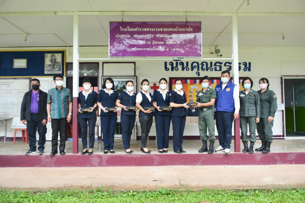 วันที่ 12 กรกฎาคม 2565นางนงค์นิตย์ เนียมศิริ นายกเหล่ากาชาดจังหวัดเลย พร้อมด้วยกรรมการเหล่ากาชาดจังหวัดเลย ที่ปรึกษาเหล่ากาชาดจังหวัดเลย ร่วมกับนายคารม คำพิทูรย์ นายอำเภอนาแห้ว , ปลัดอำเภอ ลงพื้นที่ดำเนินกิจกรรม ตามโครงการส่งเสริมและพัฒนาการพูด อ่าน เขียนภาษาไทย สำหรับนักเรียนระดับชั้น ป.1 ถึง ป.6 จังหวัดเลย เพื่อสนองพระราชดำริ สมเด็จพระกนิษฐาธิราชเจ้า กรมสมเด็จพระเทพรัตนราชสุดาฯ สยามบรมราชกุมารี อุปนายิกา ผู้อำนวยการสภากาชาดไทย ในการแก้ไขปัญหาเด็กนักเรียน และเยาวชนในถิ่นทุรกันดารให้สามารถพูด อ่าน เขียน ภาษาไทยได้ ณ โรงเรียน ตชด.บ้านนาปอ ต.แสงภา อ.นาแห้ว จ.เลย ในการนี้ เหล่ากาชาดจังหวัดเลย มอบถุงยังชีพการศึกษา เสริมปัญญาเยาวชน จำนวน 26 ถุง พร้อมขนม และอุปกรณ์กีฬาให้กับนักเรียนโรงเรียน ตชด.บ้านนาปอ