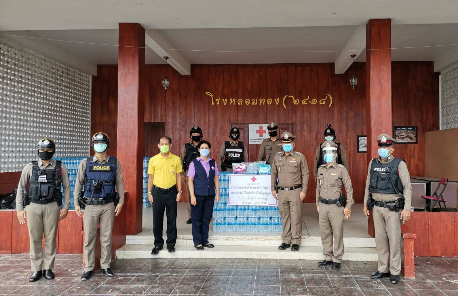 ให้แก่ พ.ต.อ.กสินธุ์ ธำรงศรีสุข ผกก.สภ.เมืองปราจีนบุรี/ผู้แทน ผบก.ภ.จว.ปจ. สำหรับแจกจ่ายให้แก่ จนท.ตร. ประจำจุดคัดกรองป้องกันการแพร่ระบาดของโรค