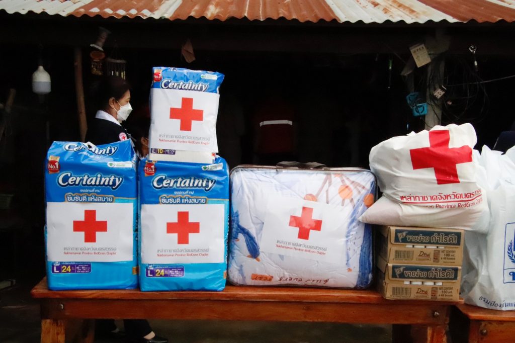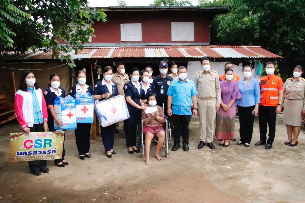 ในการนี้ เหล่ากาชาดจังหวัดนครสวรรค์ ได้มอบเงินช่วยเหลือรายละ 2,000 บาท เครื่องอุปโภค บริโภค พร้อมน้ำดื่ม ผ้าห่มนวม ผ้าอ้อมสำเร็จรูปพร้อมแผ่นรองซับ และผลิตภัณฑ์ดัชมิลล์ รายละ 2 ลัง เพื่อเป็นการบรรเทาความเดือดร้อนในเบื้องต้น และให้กำลังใจในการดำเนินชีวิตต่อไป