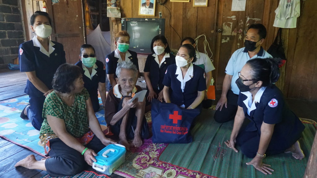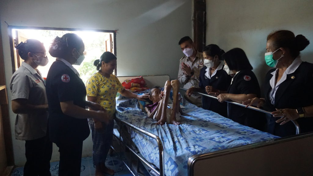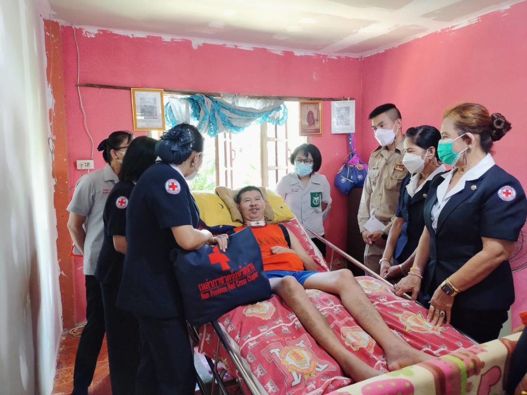 วันที่ 25 กรกฎาคม 2565 นางสุดารัตน์ แววบัณฑิต นายกเหล่ากาชาดจังหวัดน่าน มอบหมายให้นางวาสิฎฐี ทวีสิงห์ รองนายกเหล่ากาชาดจังหวัดน่าน พร้อมด้วยกรรมการและสมาชิกเหล่ากาชาดจังหวัดน่าน กิ่งกาชาดอำเภอนาน้อย น่าน ร่วมกับ เจ้าหน้าที่สาธารณสุขอำเภอนาน้อย โรงพยาบาลค่ายสุริยพงษ์ และเจ้าหน้าที่พัฒนาสังคมและความมั่นคงของมนุษย์จังหวัดน่าน ผู้นำท้องที่ ท้องถิ่น ออกเยี่ยมและให้กำลังใจผู้ป่วย ผู้พิการ ในพื้นที่ ตำบลสันทะ อำเภอนาน้อย จำนวน 3 ราย พร้อมมอบถุงยังชีพ และสิ่งของใช้ที่จำเป็น จำนวน 3 ชุด