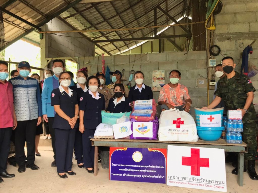 และองค์กรปกครองส่วนท้องถิ่น ลงพื้นที่เยี่ยมครัวเรือนยากจน ในโอกาสนี้เหล่ากาชาดจังหวัดนครพนมได้มอบเครื่องอุปโภคบริโภคและสิ่งของจำเป็นในการดำเนินชีวิตประจำวัน