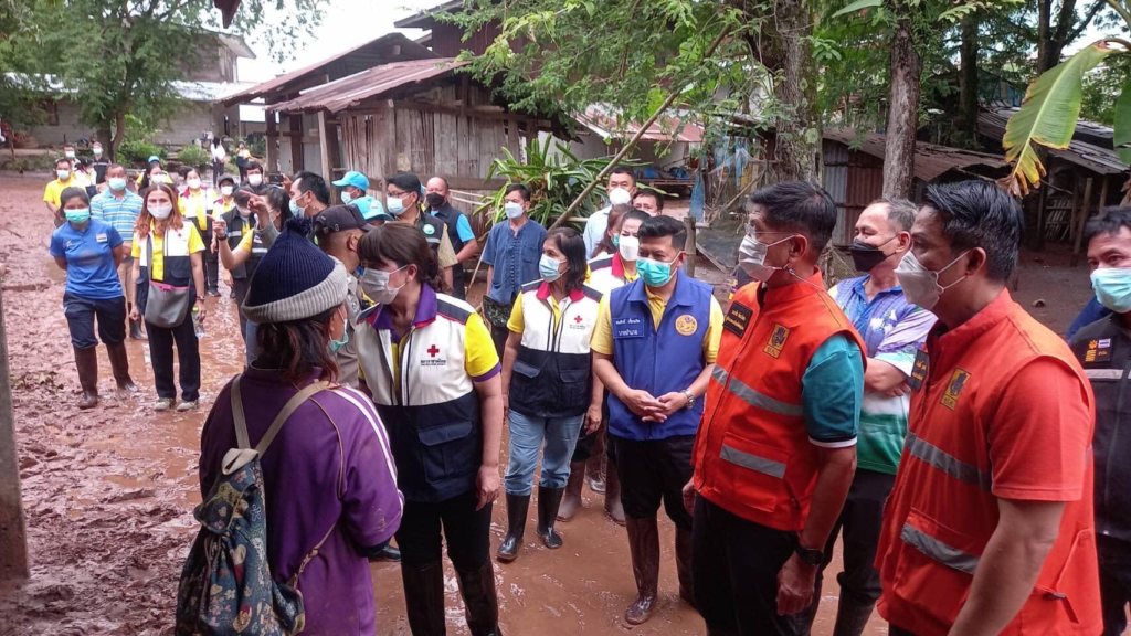 วันที่ 21 สิงหาคม 2565 นายรณชัย จิตรวิเศษ ผู้ว่าราชการจังหวัดพิษณุโลก พร้อมด้วยนางวัชรินทร์ จิตรวิเศษ นายกเหล่ากาชาดจังหวัดพิษณุโลก ลงพื้นที่ติดตามสถานการณ์น้ำในพื้นที่ ตำบลนครชุม อำเภอนครไทย จังหวัดพิษณุโลก โดยนายสมศักดิ์ เกี้ยวเกิด นายอำเภอนครไทย นางอรนุช ชัยชาญ สำนักงานพัฒนาสังคมและความมั่นคงของมนุษย์จังหวัดพิษณุโลก และหัวหน้าส่วนราชการ ผู้บริหารองค์กรปกครองส่วนท้องถิ่น ศูนย์ ปภ.เขต9 พล. ปภ.พล.สาขานครไทย กิ่งกาชาด ปลัดอำเภอ และกำนัน ผู้ใหญ่บ้านให้การต้อนรับและให้ข้อมูล สถานการณ์ในพื้นที่ตำบลนครไทยที่ได้รับผลกระทบได้แก่ 1. บ้านนาฟองแดง ม.7 น้ำป่าจากห้วยพริกขิง หลากเข้าท่วมถนนภายในหมู่บ้าน บ้านเรือนราษฎร จำนวน 45 หลัง วัวตาย 1 ตัว 2. บ้านนากะบาก ม.6 รับน้ำต่อจากบ้านนาฟองแดง หลากเข้าท่วมบ้านเรือน จำนวน 1 หลัง และ 3. บ้านนาขุมคัน ม.5 รับน้ำต่อจากบ้านนากะบาก หลากเข้าท่วมบ้านเรือน จำนวน 5 หลัง สุกรถูกน้ำพัดสูญหาย 11 ตัว วัวตาย 1 ตัว