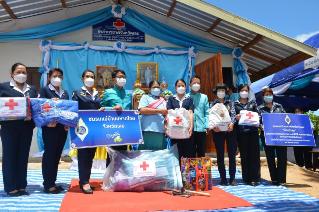 วันที่ 23 สิงหาคม 2565 นางนงค์นิตย์ เนียมศิริ นายกเหล่ากาชาดจังหวัดเลย มอบหมายให้นางขนิษฐา พินิจพานิชย์ รองนายกเหล่ากาชาดจังหวัดเลย , กรรมการเหล่ากาชาดจังหวัดเลย , สมาชิกเหล่ากาชาดจังหวัดเลย มอบบ้านตามโครงการบ้านกาชาดเลย เพื่อร่วมเฉลิมพระเกียรติ 70 พรรษา พระบาทสมเด็จพระปรเมนทรรามาธิบดีศรีสินทรมหาวชิราลงกรณ พระวชิรเกล้าเจ้าอยู่หัว และเฉลิมพระเกียรติ 90 พรรษา สมเด็จพระนางเจ้าสิริกิต์พระบรมราชินีนาถ พระบรมราชชนนีพันปีหลวง องค์สภานายิกาสภากาชาดไทย ได้ก่อสร้างบ้านให้กับผู้ยากไร้ จำนวน 13 หลัง และซ่อมแซมปรับปรุงบ้าน จำนวน 4 หลัง 14 อำเภอ จังหวัดเลย ในพื้นที่อำเภอนาแห้ว มอบบ้านกาชาดเลย (หลังที่8) ให้แก่นางหม่วน จันทะคุณ บ้านนาผักก้าม ม.4 ต.เหล่ากอหก อ.นาแห้ว จ.เลย พร้อมมอบถุงเครื่องอุปโภค บริโภค ที่นอน หมอน หม้อหุงข้าว มุ้ง ผ้าห่ม สิ่งของที่จำเป็น ให้แก่ครอบครัวดังกล่าว โดยมีนายศิริวัฒน์ พินิจพานิชย์ ปลัดจังหวัดเลย / เลขานุการเหล่ากาชาดจังหวัดเลย เป็นประธาน พร้อมด้วยนายคารม คำพิทูรย์ นายอำเภอนาแห้ว หัวหน้าส่วนราชการ ชมรมแม่บ้านมหาดไทยจังหวัดเลย ผู้นำท้องถิ่น ร่วมพิธีในครั้งนี้ โดยเหล่ากาชาดจังหวัดเลย ได้มอบเงิน จำนวน 100,000 บาท ให้กับอำเภอนาแห้ว ดำเนินการก่อสร้างบ้านกาชาดเลย โดยได้รับความร่วมมือจากภาคส่วนราชการ ฝ่ายปกครอง องค์กรปกครองส่วนท้องถิ่น ประชาชนจิตอาสา ได้ร่วมกันก่อสร้างบ้านกาชาดเลย หลังนี้