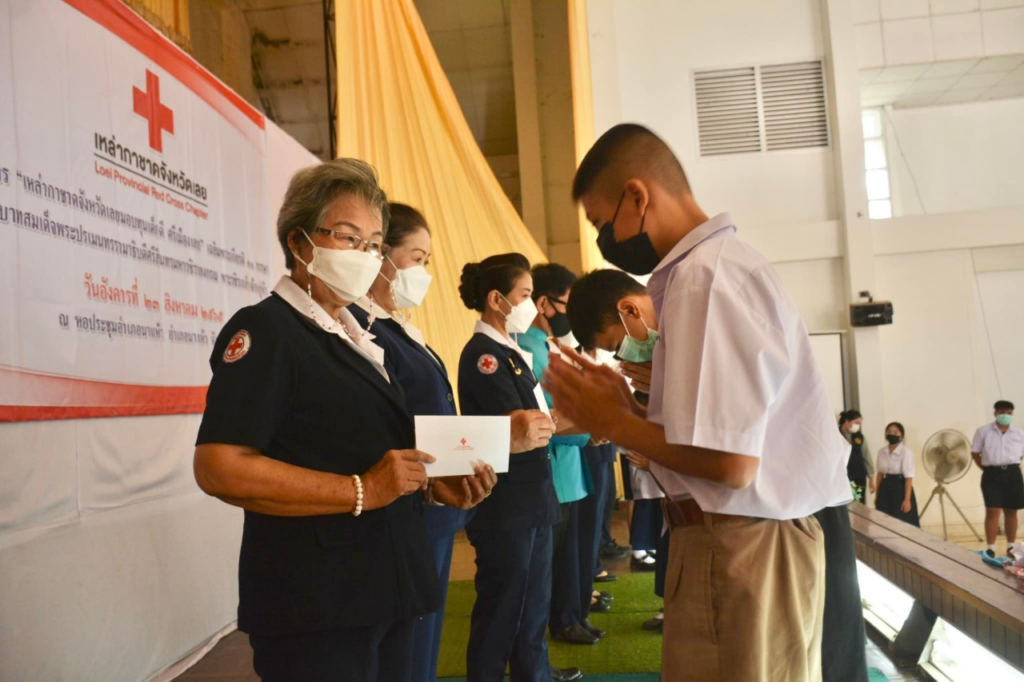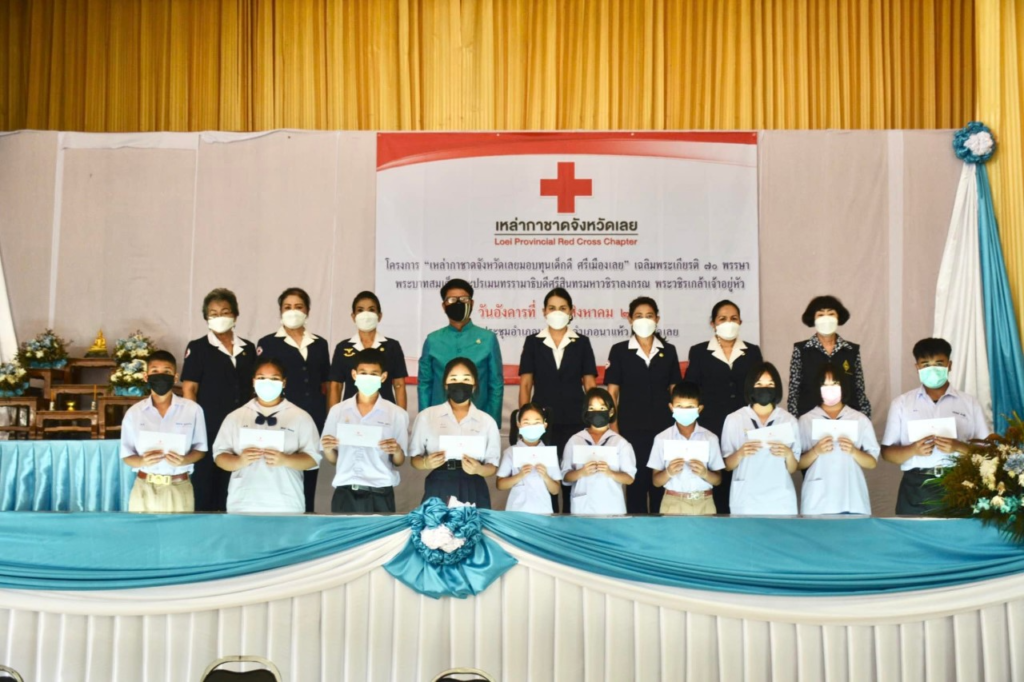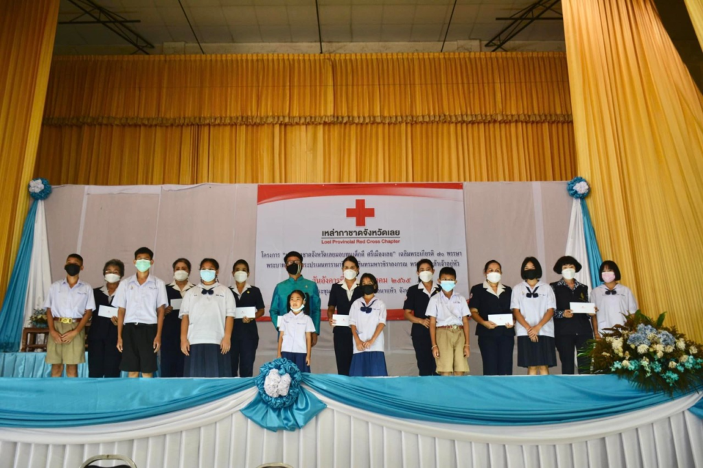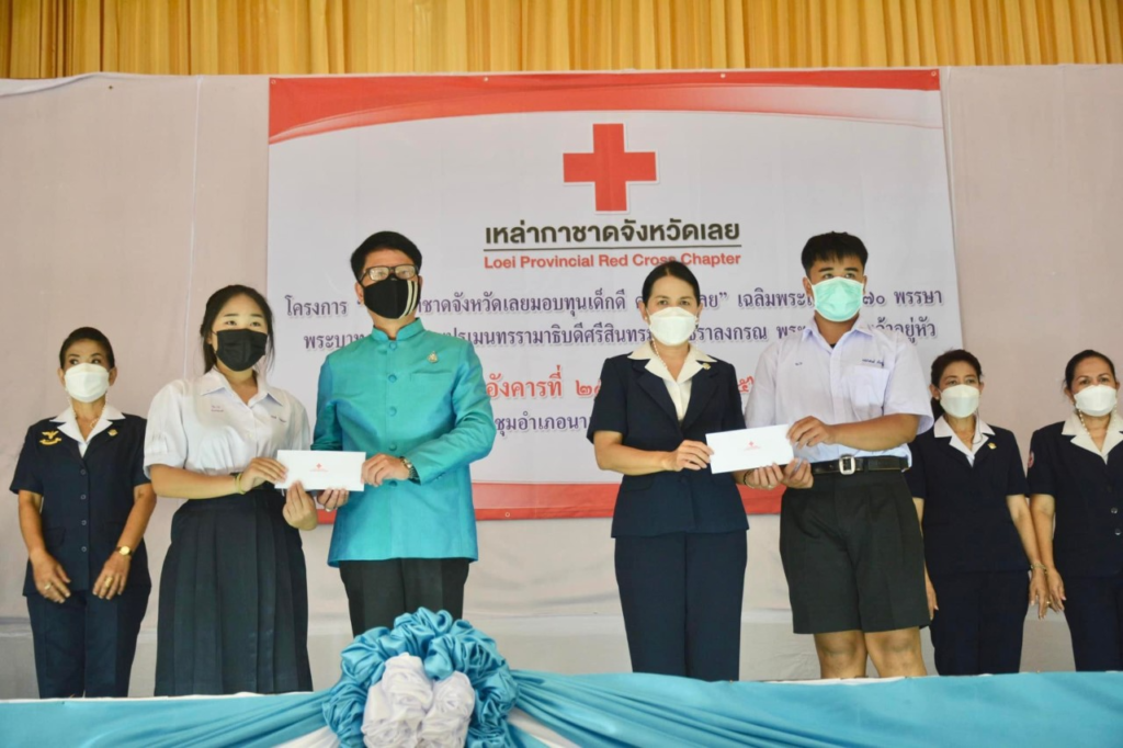 วันที่ 23 สิงหาคม 2565 นางนงค์นิตย์ เนียมศิริ นายกเหล่ากาชาดจังหวัดเลย มอบหมายนางขนิษฐา พินิจพานิชย์ รองนายกเหล่ากาชาดจังหวัดเลย กรรมการเหล่ากาชาดจังหวัดเลย สมาชิกเหล่ากาชาดจังหวัดเลย มอบทุนการศึกษาตามโครงการ “เหล่ากาชาดจังหวัดเลย มอบทุนเด็กดี ศรีเมืองเลย” เฉลิมพระเกียรติ 70 พรรษา พระบาทสมเด็จพระปรเมนทรรามาธิบดีศรีสินทร มหาวชิราลงกรณ พระวชิรเกล้าเจ้าอยู่หัว “ เพื่อเป็นการส่งเสริมให้เด็กนักเรียนที่ยากจน มีความประพฤติดี มีคุณธรรม จริยธรรม และมีจิตอาสา ในการบำเพ็ญประโยชน์ต่อโรงเรียนและสังคม ในพื้นที่อำเภอนาแห้ว จังหวัดเลย จำนวน 10 ทุน ๆ ละ 2,000 บาท ณ หอประชุมอำเภอนาแห้ว อำเภอนาแห้ว จังหวัดเลย โดยมีนายคารม คำพิทูรย์ นายอำเภอนาแห้ว ร่วมมอบทุนฯ และคณะครู นักเรียนร่วมพิธีในครั้งนี้