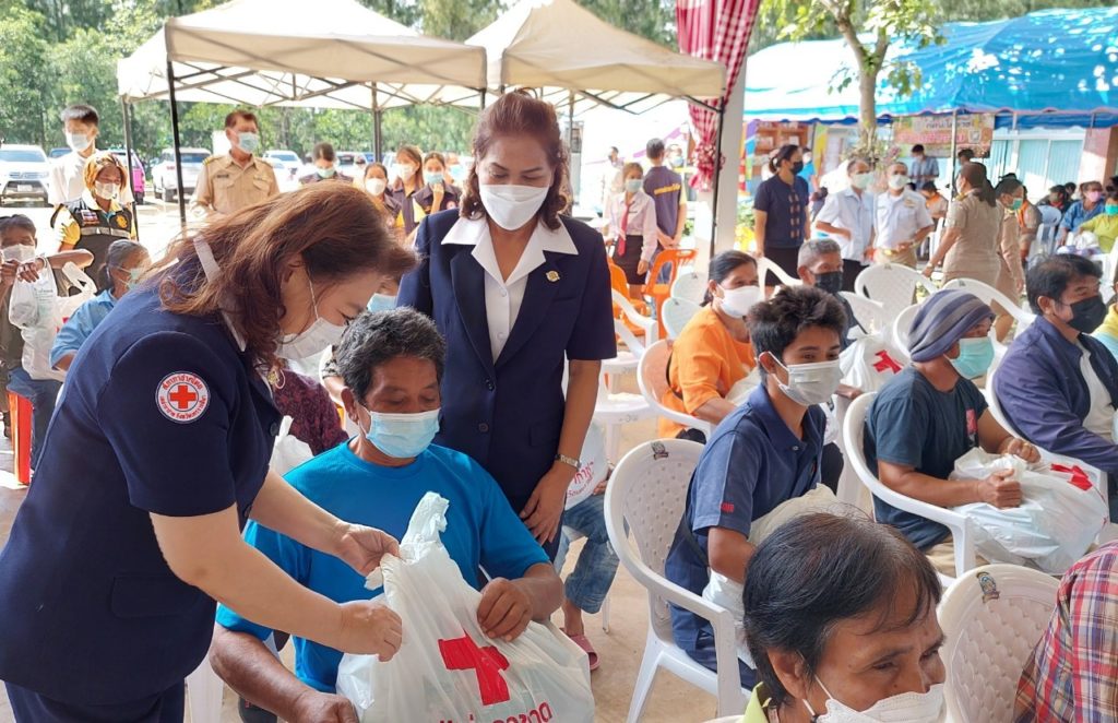 วันที่ 18 กรกฎาคม 2565 นางณัฏฐินีภรณ์ จันทรโณทัย นายกเหล่ากาชาดจังหวัดนครราชสีมา มอบหมายให้ นางสุฐิดา วิริยะกุลนันท์ รองนายกเหล่ากาชาดจังหวัดนครราชสีมา พร้อมด้วยกรรมการและสมาชิกเหล่ากาชาดจังหวัดนครราชสีมา ร่วมโครงการ “สร้างเสริมความจงรักภักดีดีต่อสถาบัน บำบัดทุกข์ บำรุงสุข ให้ประชาชน” (จังหวัดเคลื่อนที่) ณ สำนักงานเทศบาลตำบลวังหิน อำเภอโนนแดง จังหวัดนครราชสีมา โดยมี