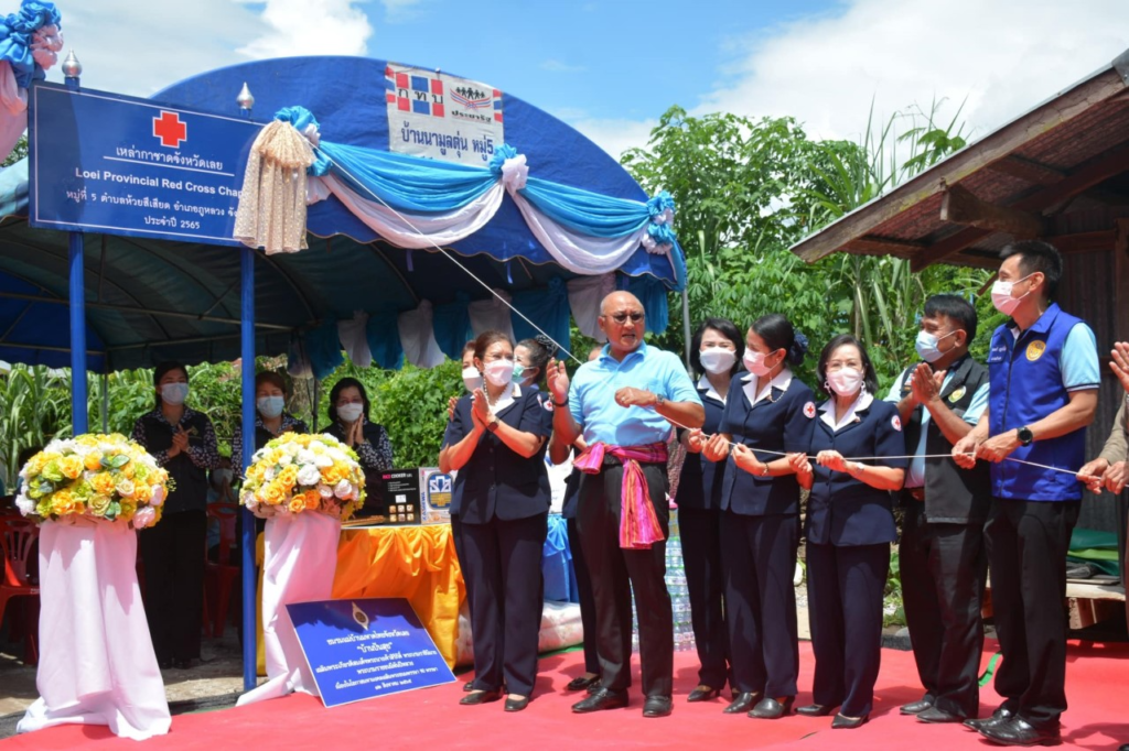 วันที่ 17 สิงหาคม 2565 นายชัยธวัช เนียมศิริ ผู้ว่าราชการจังหวัดเลย เป็นประธาน มอบบ้านตามโครงการบ้านกาชาดเลย เพื่อร่วมเฉลิมพระเกียรติ 70 พรรษา พระบาทสมเด็จพระปรเมนทรรามาธิบดีศรีสินทรมหาวชิราลงกรณ พระวชิรเกล้าเจ้าอยู่หัว และเฉลิมพระเกียรติ 90 พรรษา สมเด็จพระนางเจ้าสิริกิต์พระบรมราชินีนาถ พระบรมราชชนนีพันปีหลวง องค์สภานายิกาสภากาชาดไทย ได้ก่อสร้างบ้านให้กับผู้ยากไร้ จำนวน 13 หลัง และซ่อมแซมปรับปรุงบ้าน จำนวน 4 หลัง 14 อำเภอ จังหวัดเลย ในพื้นที่อำเภอภูหลวง มอบบ้านกาชาดเลย (หลังที่7) ให้แก่นายสวาท เกษทองมา ที่อยู่ บ้านนามูลตุ่น ม.5 ต.ห้วยสีเสียด อ.ภูหลวง จ.เลย พร้อมมอบถุงเครื่องอุปโภค บริโภค ที่นอน หมอน หม้อหุงข้าว มุ้ง ผ้าห่ม สิ่งของที่จำเป็น ให้แก่ครอบครัวดังกล่าว โดยมีนางนงค์นิตย์ เนียมศิริ นายกเหล่ากาชาดจังหวัดเลย กล่าวรายงาน พร้อมด้วยนางขนิษฐา พินิจพานิชย์ รองนายกเหล่ากาชาดจังหวัดเลย นายมนตรี เสฏฐปัญโญ นายอำเภอภูหลวง กรรมการเหล่ากาชาดจังหวัดเลย หัวหน้าส่วนราชการ ชมรมแม่บ้านมหาดไทยจังหวัดเลย ธกส. ผู้นำท้องถิ่น ประชาชน จิตอาสา ร่วมพิธีในครั้งนี้ โดยเหล่ากาชาดจังหวัดเลย ได้มอบเงิน จำนวน 100,000 บาท ให้กับอำเภอภูหลวง ดำเนินการก่อสร้างบ้านกาชาดเลย โดยได้รับความร่วมมือจากภาคส่วนราชการ ฝ่ายปกครอง องค์กรปกครองส่วนท้องถิ่น ประชาชนจิตอาสา ได้ร่วมกันก่อสร้างบ้านกาชาดเลย หลังนี้