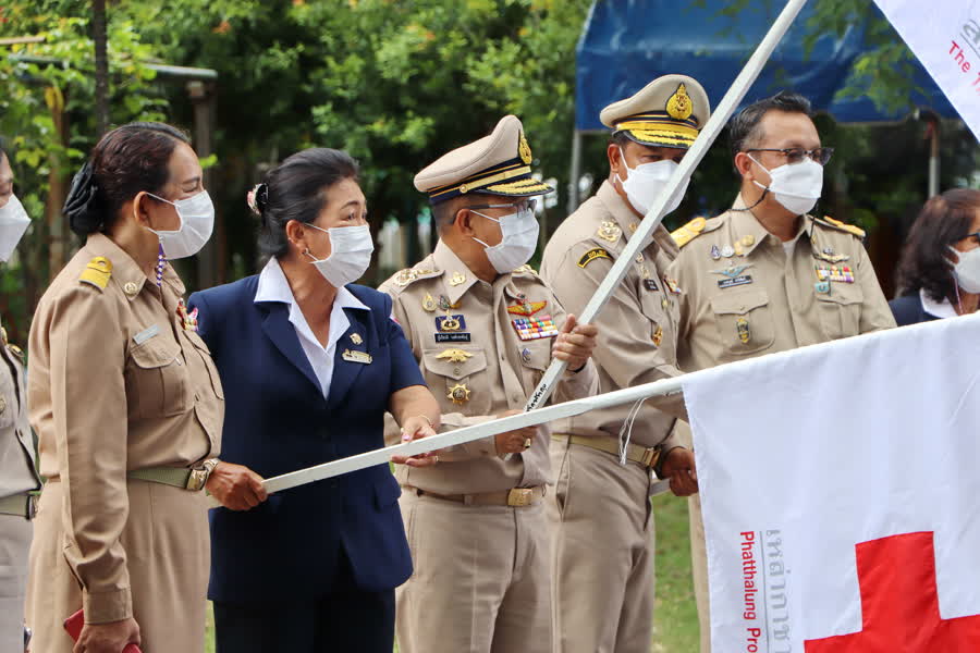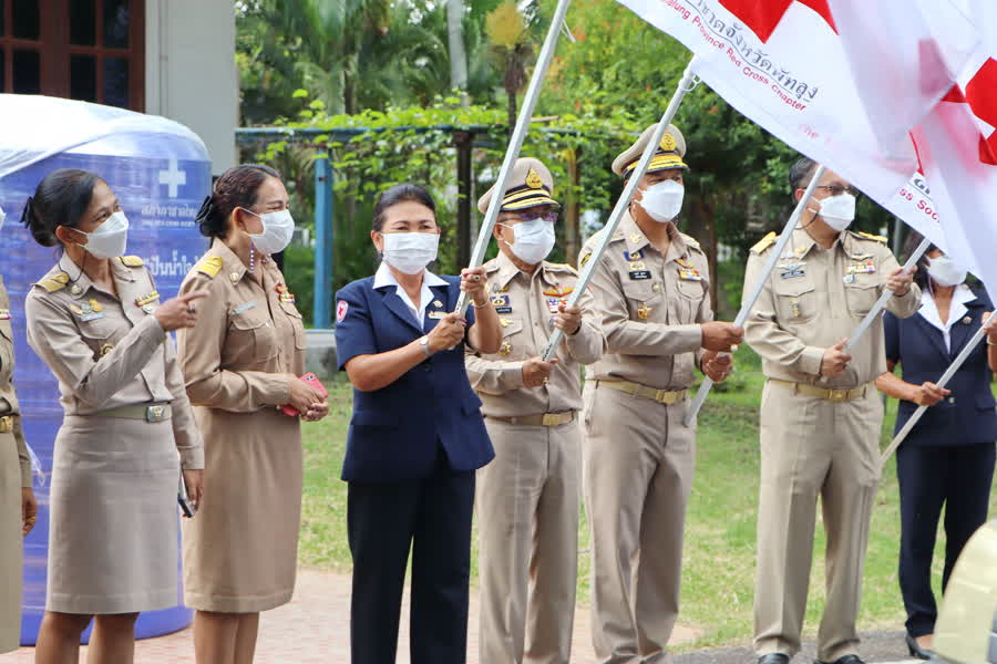 และสมาชิกเหล่ากาชาดจังหวัดพัทลุง นายอำเภอและตัวแทนทั้ง 11 อำเภอร่วมพิธีเปิดกิจกรรม “ปันน้ำใจ ให้น้ำดื่ม”