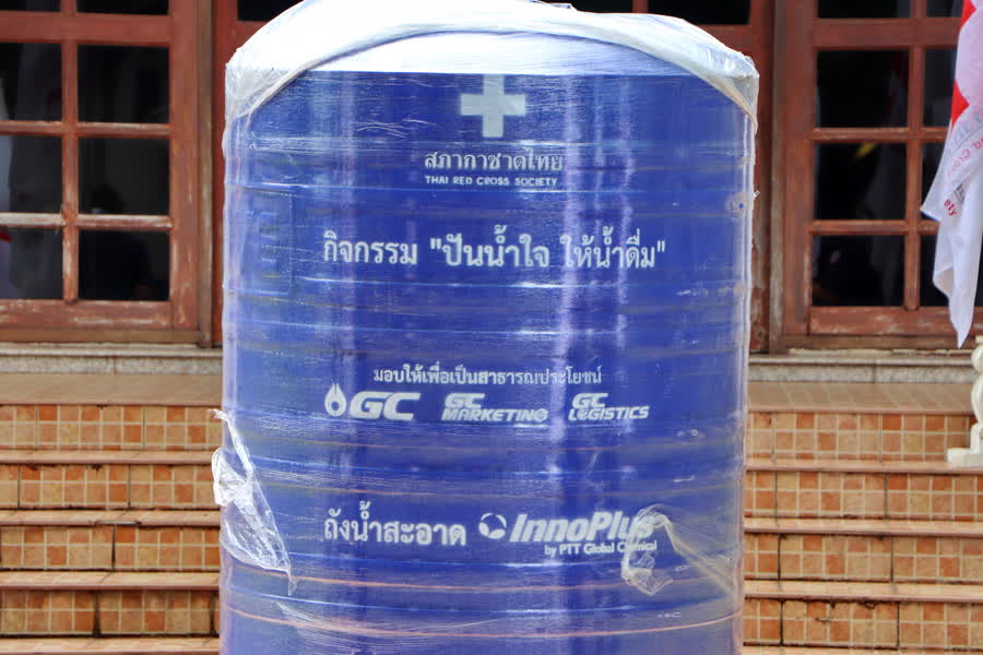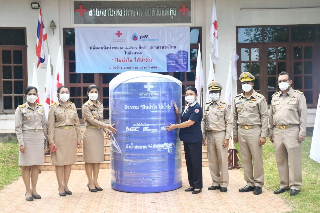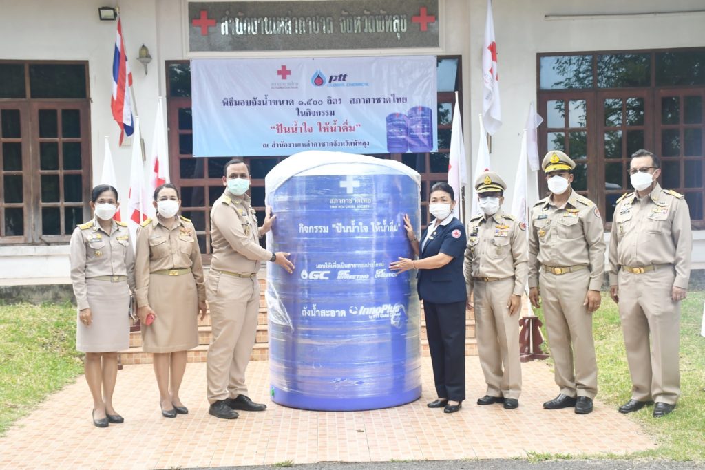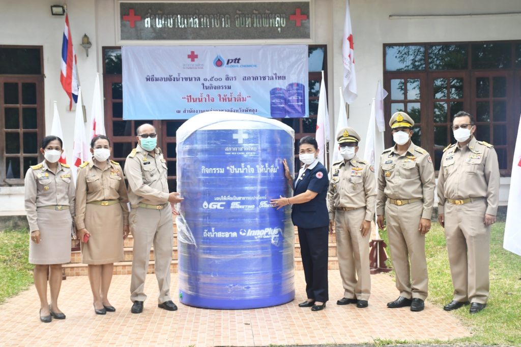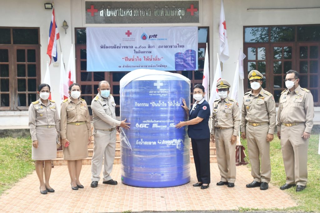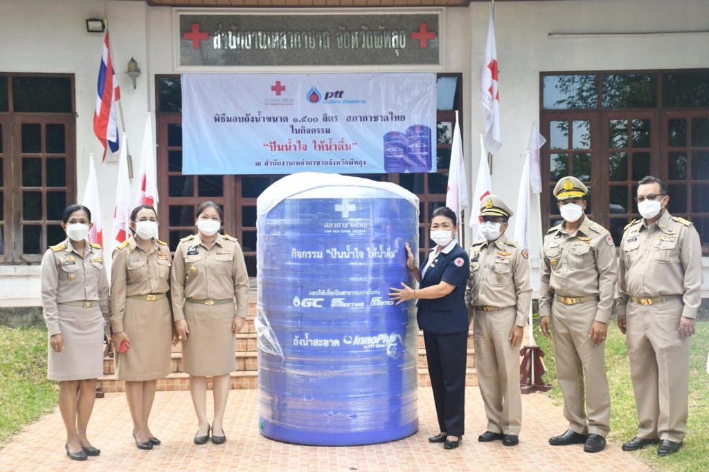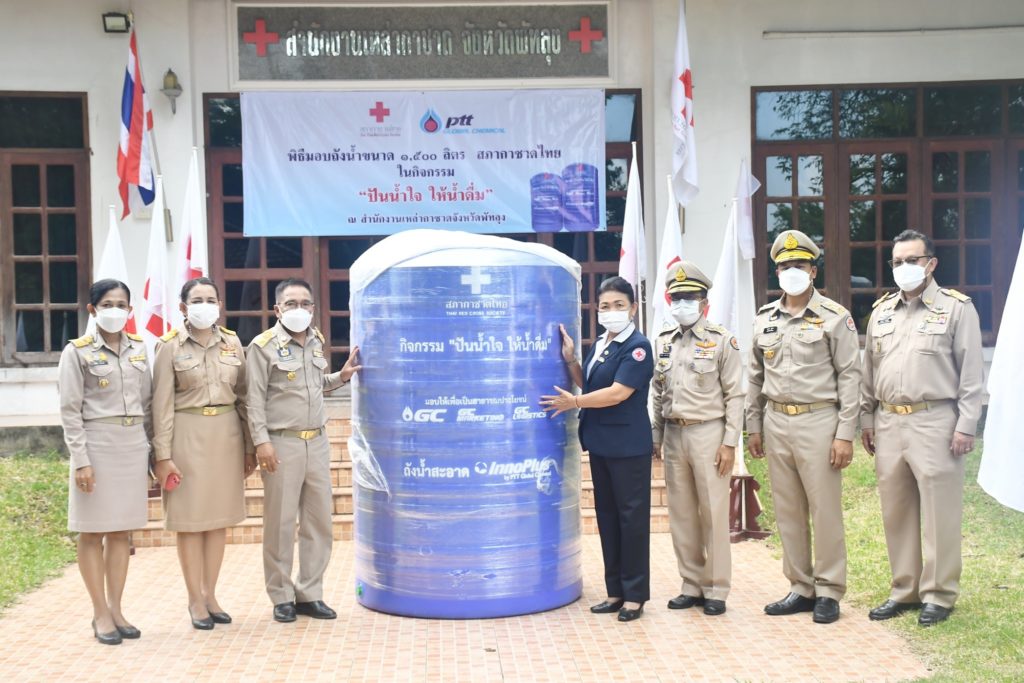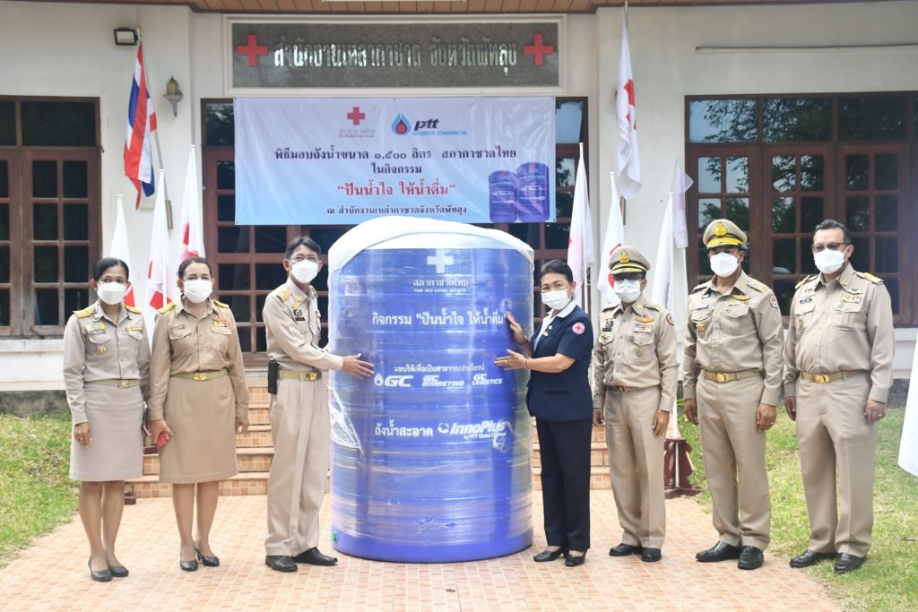 จากสภากาชาดไทย สำนักงานบรรเทาทุกข์และประชานามัยพิทักษ์ สำนักงานจัดหารายได้ สำนักงานบริหารเหล่ากาชาด มอบให้เพื่อเป็นสาธารณประโยชน์ ช่วยเหลือประชาชน เพื่อการอุปโภค บริโภค เก็บกักน้ำ แก่ อำเภอ ที่เป็นพื้นที่เสี่ยงภัยแล้ง หรือขาดแคลนน้ำและภาชนะบรรจุน้ำสะอาด เหล่ากาชาดจังหวัดพัทลุง ได้รับการสนับสนุนแท้งค์น้ำ จากบริษัท พีทีที โกลบอล เคมิคอล จํากัด (มหาชน) ขนาดบรรจุใบละ 1,500 ลิตร จํานวน 10 ใบ และอีกหนึ่งใบได้รับการสนับสนุน จากว่าที่นายกองเอกอดุลย์ ชูทอง ปลัดจังหวัดพัทลุง/เลขานุการเหล่ากาชาดจังหวัดพัทลุง ซื้อให้จำนวน 1 ใบขนาดบรรจุ 1,500 ลิตร เพื่อจะได้ครบทั้ง 11 อำเภอในจังหวัดพัทลุง โดยมี นายกู้เกียรติ วงศ์กระพันธุ์ ผู้ว่าราชการจังหวัดพัทลุง เป็นประธานในพิธี ณ บริเวณหน้าสำนักงานเหล่ากาชาดจังหวัดพัทลุง (บริเวณจวนผู้ว่าราชการจังหวัดพัทลุง) ถนนราเมศวร์ ตำบลคูหาสวรรค์ อำเภอเมืองพัทลุง จังหวัดพัทลุง