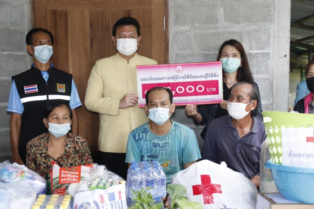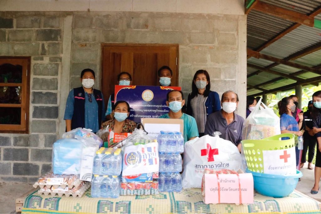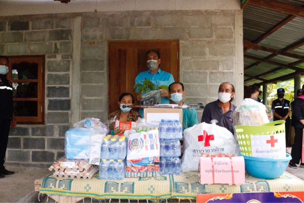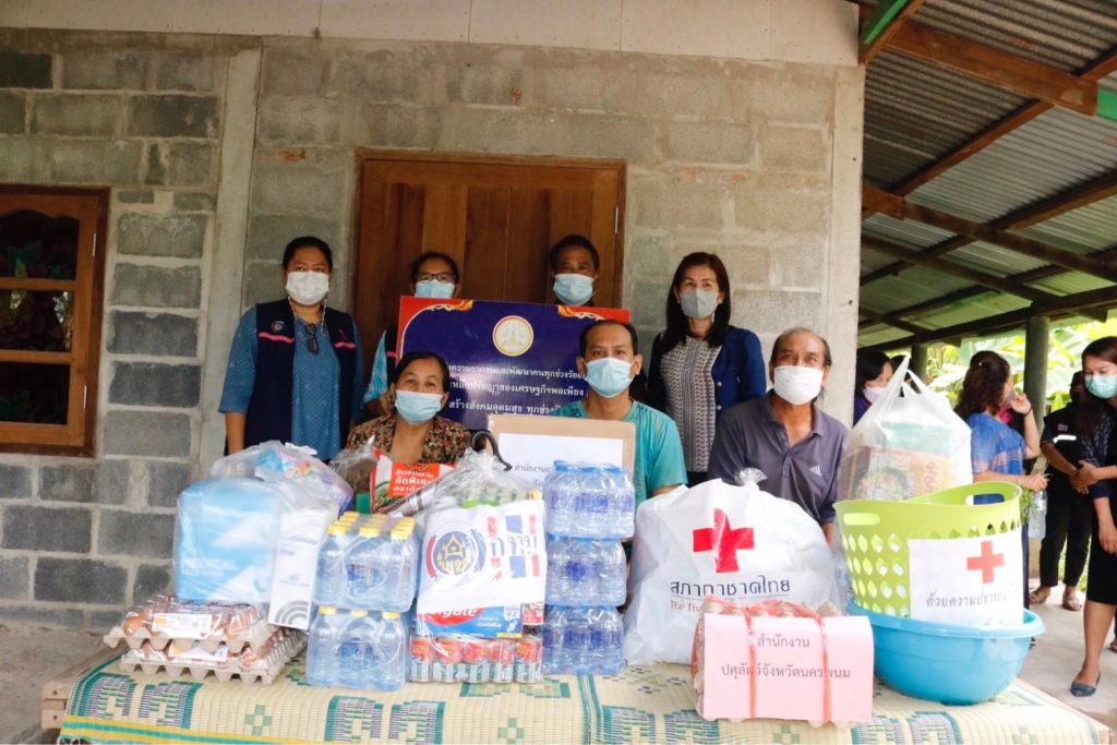 วันนี้ 20 พฤษภาคม 2565 นางกาญจนี รุจนเสรี นายกเหล่ากาชาดจังหวัดนครพนม มอบหมายให้ นางสาวอรชร สุสิงห์ เจ้าหน้าที่บริหารงานทั่วไป 5 ร่วมลงพื้นที่กับส่วนราชการจังหวัดนครพนมและอำเภอ ภาคเอกชน ภาคประชาสังคมและองค์กรปกครองส่วนท้องถิ่น ในการลงพื้นที่เยี่ยมครัวเรือนยากจนตามโครงการขจัดความยากจนและพัฒนาคนทุกช่วงวัยอย่างยั่งยืน ตามหลักปรัชญาของเศรษฐกิจพอเพียง “นครพนม สร้างสังคมอุดมสุข ทุกช่วงวัยอย่างยั่งยืน” ประจำปี 2565 เพื่อรับทราบปัญหาความต้องการและพิจารณาให้ความช่วย แก่ครอบครัวนายคำพันธ์ แสงอ่อน อายุ 65 ปี อยู่บ้านเลขที่ 36 หมู่ที่ 6 บ้านดงติ้ว ตำบลบ้านกลาง อำเภอเมืองนครพนม จังหวัดนครพนม ปัจจุบันมีสมาชิกในคร้วเรือน 3 คน คือ นายคำพันธ์ แสงอ่อน หัวหน้าครัวเรือน อาชีพทำนาและปลูกผักบุ้งขาย ป่วยเป็นโรคความดัน ภรรยา ส่วยบุตรชาย อายุ 38 ปีพิการทางจิตใจหรือพฤติกรรม มีรายได้หลักจากการทำนา ขายผักบุ้ง และเบี้ยยังชีพผู้สูงอายุ 2 คน 1,200 บาท/เดือน ส่วนบุตรชายได้รับเบี้ยผู้พิการเดือนละ 800 บาท เหล่ากาชาดจังหวัดนครพนมมอบเครื่องอุปโภคบริโภคและสิ่งของเครื่องใช้จำเป็นในการดำรงชีพช่วยเหลือ