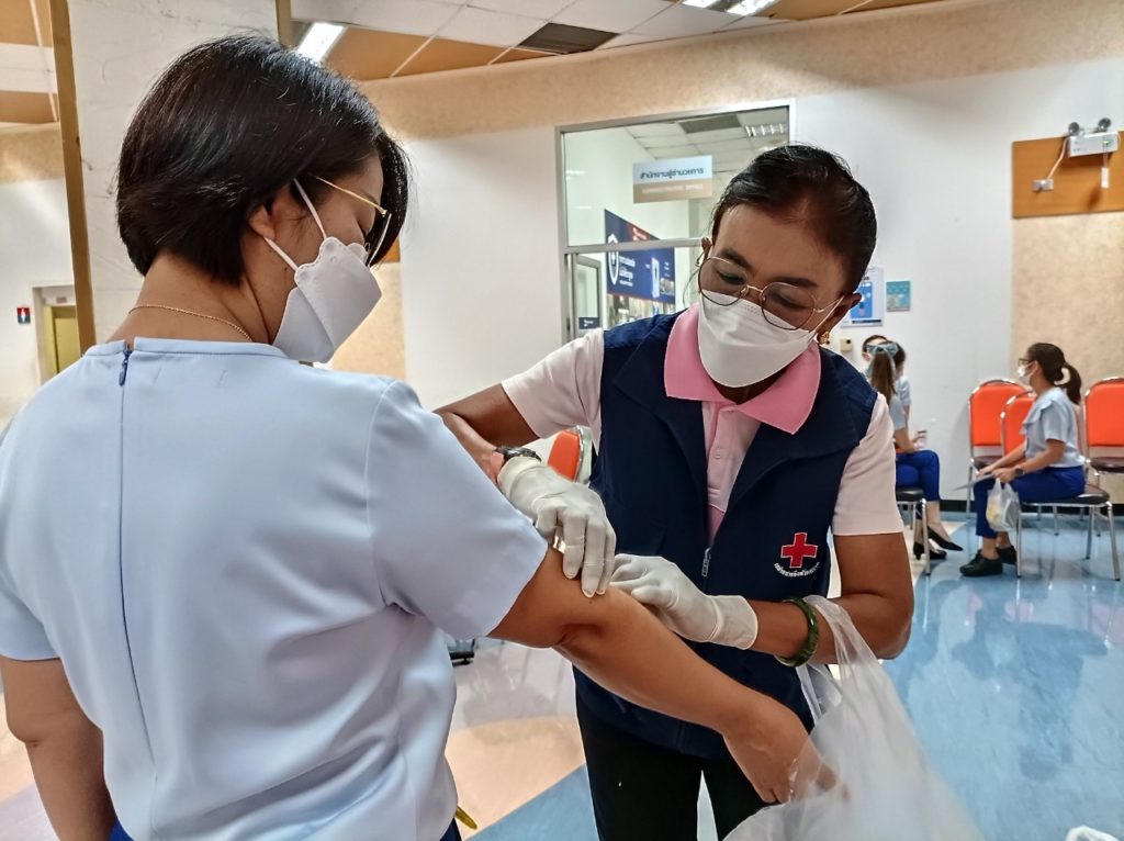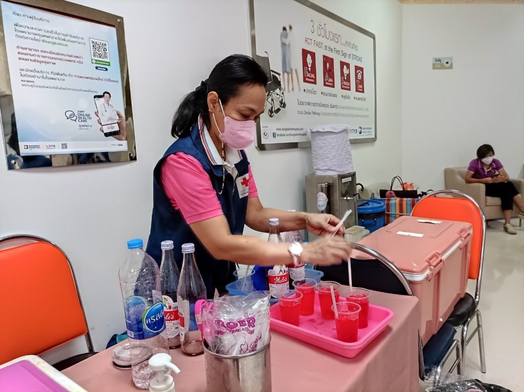 วันที่ 9 สิงหาคม 2565 นางชุลีพร เตรัตน์ นายกเหล่ากาชาดจังหวัดตราด ประธานแม่บ้านมหาดไทยจังหวัดตราด พร้อมด้วย นางฐิติวรดา เทพเสนา นางอมรรัตน์ เอี่ยมสุนทร รองนายกเหล่ากาชาดจังหวัดตราด ผู้ช่วยนายกเหล่ากาชาดจังหวัดตราด คณะกรรมการและสมาชิกเหล่ากาชาดจังหวัดตราด ร่วมปฏิบัติงานรับบริจาคโลหิต ณ ห้องประชุม ชั้น 2 โรงพยาบาลกรุงเทพตราด ซึ่งเหล่ากาชาดจังหวัดตราด ร่วมกับโรงพยาบาลตราด และโรงพยาบาลกรุงเทพตราด จัดขึ้น โดยมี นายแพทย์จักรกฤษณ์ สุระการ ผู้อำนวยการโรงพยาบาลกรุงเทพตราด นำพนักงาน และประชาชน เข้าร่วมบริจาคโลหิต มีผู้มาแสดงความจำนงจะบริจาคโลหิต จำนวน 59 ราย ผ่านการคัดกรอง จำนวน 49 ราย ได้โลหิต จำนวน 22,050 ซีซี ทั้งนี้ การไฟฟ้าส่วนภูมิภาคจังหวัดตราด และสมาคมตัวแทนประกันชีวิตและที่ปรึกษาทางการเงินจังหวัดตราด นำพนักงานเข้าร่วมกิจกรรมในครั้งนี้ด้วยสำหรับการออกหน่วยรับบริจาคโลหิตครั้งถัดไป มีกำหนดจัดขึ้นในวันพุธที่ 17 สิงหาคม 2565 เวลา 09.00 – 12.00 น. ณ หอประชุมที่ว่าการอำเภอเขาสมิง