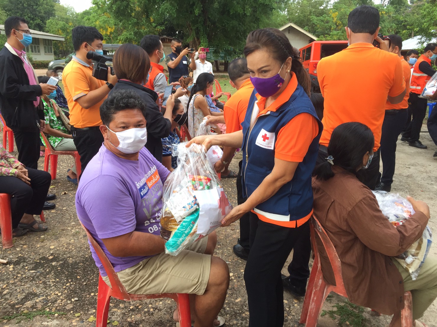 อำนาจเจริญ จังหวัดอำนาจเจริญ ในการนี้เหล่ากาชาดจังหวัดอำนาจเจริญ มอบเครื่องอุปโภค-บริโภค จำนวน 39 ชุด เพื่อเป็นการสร้างขวัญให้กำลังใจในเบื้องต้น