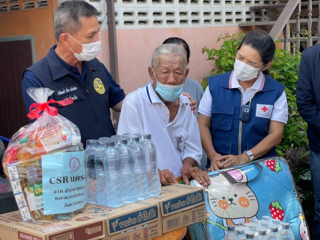 วันที่ 31 กรกฎาคม 2565 ทันตแพทย์หญิงศิริรัตน์ ศิริมาศ นายกเหล่ากาชาดจังหวัดนครสวรรค์ มอบหมายให้นางวิยดา พลับน้อย รองนายกเหล่ากาชาดจังหวัดนครสวรรค์ พร้อมคณะ ลงพื้นที่ร่วมกับปกครองจังหวัดนครสวรรค์ พัฒนาสังคมและความมั่นคงของมนุษย์จังหวัดนครสวรรค์ เพื่อติดตามและเยี่ยมให้กำลังใจคุณตาตี๋ หรือ นายย่งเฮง แซ่เตีย อายุ 75 ปี มีอาชีพรับจ้างฝนมีด ปัจจุบันคุณตาตี๋เป็นโรคต้อกระจก ทำให้ความสามารถในการฝนมืดลดลงอีกทั้งอายุมากขึ้น และใช้ชีวิตเพียงลำพัง ไม่มีครอบครัว ทำให้มีความเป็นอยู่ที่ยากลำบาก ซึ่งบ้านพักที่อาศัยปัจจุบันนั้น ก็ได้รับความอนุเคราะห์จากผู้ใจดีแบ่งห้องให้อาศัยโดยไม่คิดค่าใช้จ่าย อยู่บริเวณใกล้โรงเรียนอนุบาลนครสวรรค์ อำเภอเมืองนครสวรรค์ ในการนี้ เหล่ากาชาดจังหวัดนครสวรรค์ ได้มอบเงินช่วยเหลือ จำนวน 2,000 บาท เครื่องอุปโภค – บริโภค 2 ชุด ผลิตภัณฑ์นมยูเอชที 3 ลัง และผ้าห่ม 1 ชุด เพื่อเป็นการบรรเทาความเดือดร้อนในเบื้องต้น และเป็นกำลังใจในการดำเนินชีวิตต่อไป