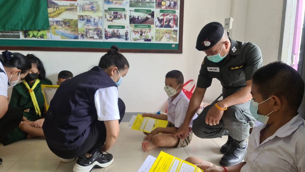 และมอบยาชุดพระราชทาน พอ. สว. ยาสีฟัน และแปรงสีฟัน ให้กับโรงเรียนตำรวจตระเวนชายแดนบ้านท่ากุ่ม เพื่อนำไปใช้ประโยชน์ต่อไป