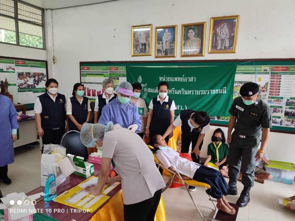 วันที่ 21 กรกฎาคม 2565 นางชุลีพร เตรัตน์ นายกเหล่ากาชาดจังหวัดตราด ประธานแม่บ้านมหาดไทยจังหวัดตราด พร้อมด้วยคณะกรรมการเหล่ากาชาดจังหวัดตราด และคณะแม่บ้านมหาดไทยจังหวัดตราด ออกเยี่ยมหน่วยทันตกรรมเคลื่อนที่ พอ.สว. ณ โรงเรียนตำรวจตระเวนชายแดนบ้านท่ากุ่ม ตำบลท่ากุ่ม อำเภอเมืองตราด จังหวัดตราด การจัดกิจกรรมในครั้งนี้ จัดขึ้นโดยสำนักงานสาธารณสุขจังหวัดตราด ร่วมกับโรงพยาบาลตราด และสำนักงานสาธารณสุขอำเภอเมืองตราด เพื่อให้บริการตรวจฟัน ถอนฟัน เคลือบฟลูออไรด์ สอน สาธิต การแปรงฟัน