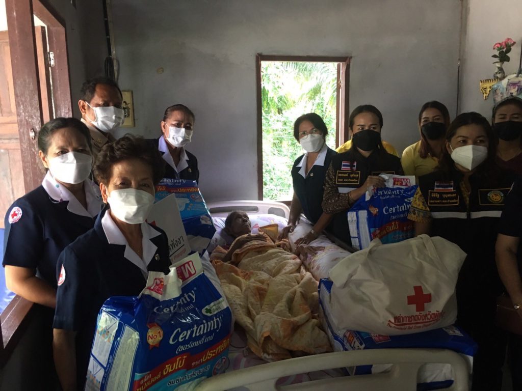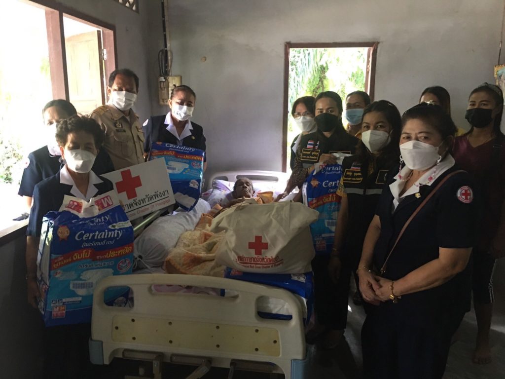 เหล่ากาชาดจังหวัดพังงา มอบผ้าอ้อมสำเร็จรูป จำนวน 4 ห่อใหญ่ คิดมูลค่า 1,700 บาท พร้อมถุงยังชีพ จำนวน 1 ชุด เพื่อเป็นการช่วยเหลือเบื้องต้นพร้อมทั้งให้กำลังใจผู้ป่วย
