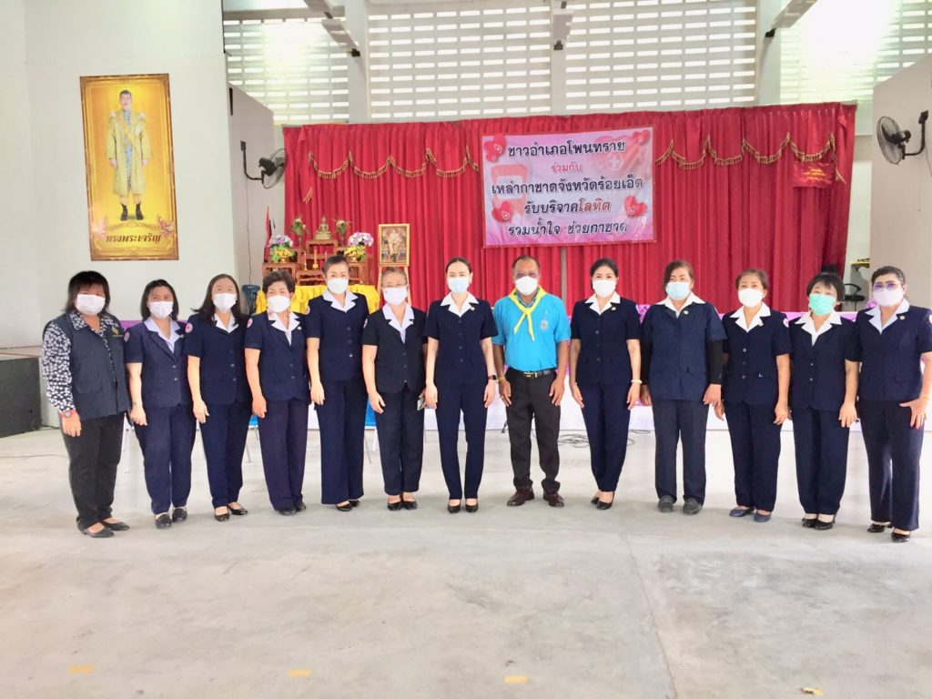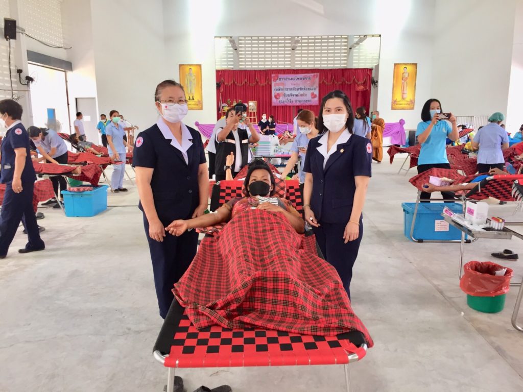 วันที่ 23 สิงหาคม 2565 นางดนิตา สมจิตต์ นายกเหล่ากาชาดจังหวัดร้อยเอ็ด พร้อมด้วยนางทัชชญา พลเยี่ยม และนางอัจฉรา ราชบุรี รองนายกเหล่ากาชาดจังหวัดร้อยเอ็ด พร้อมด้วยคณะกรรมการเหล่ากาชาดจังหวัดร้อยเอ็ด ที่ปรึกษาเหล่ากาชาดจังหวัดร้อยเอ็ด และสมาชิกเหล่ากาชาดจังหวัดร้อยเอ็ด ร่วมกับโรงพยาบาลร้อยเอ็ด ออกหน่วยรับบริจาคโลหิต ดวงตา และอวัยวะ ณ หอประชุมที่ว่าการอำเภอโพนทราย อำเภอโพนทราย จังหวัดร้อยเอ็ด ได้โลหิต จำนวน 131 ยูนิต หรือ 58,950 ซีซี ดวงตา 0 ราย อวัยวะ 0 ราย นำโดยนายอำเภอโพนทราย พร้อมด้วยปลัดอำเภอ หัวหน้าส่วนราชการ และประชาชนชาวอำเภอ โพนทรายมาร่วมบริจาคโลหิตในครั้งนี้เป็นจำนวนมาก