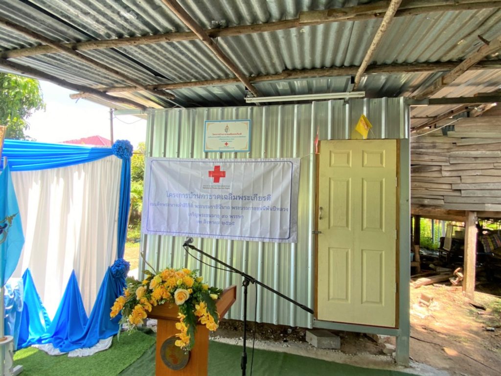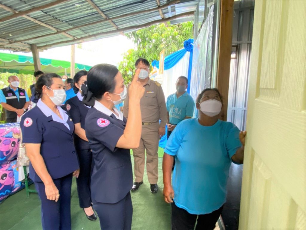 ในการการนี้ เหล่ากาชาดจังหวัดฯ กรรมการและสมาชิกเหล่ากาชาดจังหวัด ได้ร่วมบริจาคอุปกรณ์ สิ่งของเครื่องใช้จำเป็น ได้แก่ ถุงธารน้ำใจ ที่นอน หมอน มุ้ง ผ้าห่มนวม ข้าวสาร 45 กก. หม้อหุงข้าวไฟฟ้า พัดลมตั้งโต๊ะ ผลิตภัณฑ์นมพร้อมดื่มและผ้าปูยางพาราอเนกประสงค์ รวมมูลค่า 4,600 บาท อีกทั้งหน่วยงานพัฒนาสังคมและความมั่นคงของมนุษย์จังหวัดฯ ส่วนราชการต่างๆ ได้ร่วมมอบเครื่องอุปโภค บริโภค สิ่งของ เพื่อเป็นกำลังใจในการดำเนินชีวิต บรรเทาความเดือดร้อน และแสดงความยินดีในโอกาสได้รับบ้านที่ได้รับการซ่อมแซมและปรับปรุงใหม่