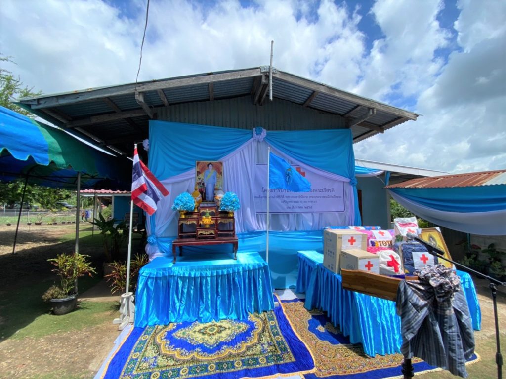 ในการการนี้ เหล่ากาชาดจังหวัดฯ กรรมการและสมาชิกเหล่ากาชาดจังหวัด ได้ร่วมบริจาคอุปกรณ์ สิ่งของเครื่องใช้จำเป็น ได้แก่ ถุงธารน้ำใจ ที่นอน หมอน มุ้ง ผ้าห่มนวม ข้าวสาร 45 กก. หม้อหุงข้าวไฟฟ้า พัดลมตั้งโต๊ะ ผลิตภัณฑ์นมพร้อมดื่ม และผ้าปูยางพาราอเนกประสงค์ รวมมูลค่า 4,600 บาท อีกทั้งหน่วยงานพัฒนาสังคมและความมั่นคงของมนุษย์จังหวัดฯ ส่วนราชการต่างๆ ได้ร่วมมอบเครื่องอุปโภค บริโภค สิ่งของ เพื่อเป็นกำลังใจในการดำเนินชีวิต บรรเทาความเดือดร้อน และแสดงความยินดีในโอกาสได้รับบ้านที่ได้รับการซ่อมแซมและปรับปรุงใหม่