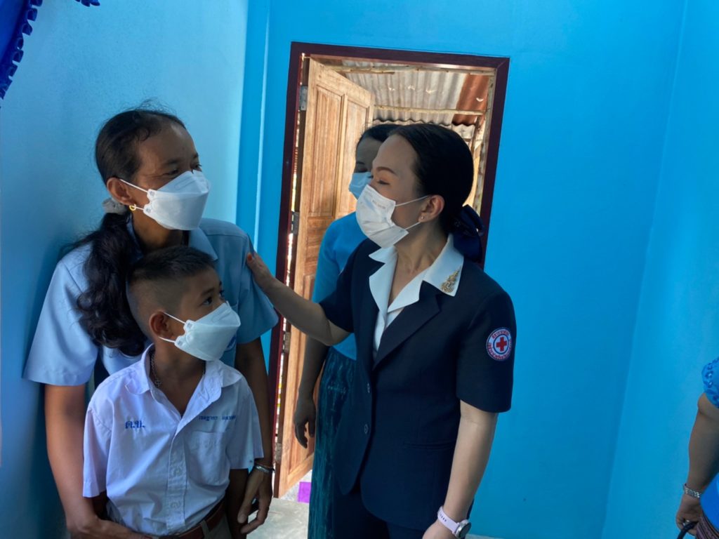 ในการการนี้ เหล่ากาชาดจังหวัดฯ กรรมการและสมาชิกเหล่ากาชาดจังหวัด ได้ร่วมบริจาคอุปกรณ์ สิ่งของเครื่องใช้จำเป็น ได้แก่ ถุงธารน้ำใจ ที่นอน หมอน มุ้ง ผ้าห่มนวม ข้าวสาร 45 กก. หม้อหุงข้าวไฟฟ้า พัดลมตั้งโต๊ะ ผลิตภัณฑ์นมพร้อมดื่ม และผ้าปูยางพาราอเนกประสงค์ รวมมูลค่ากว่า 4,000 บาท อีกทั้งหน่วยงานพัฒนาสังคมและความมั่นคงของมนุษย์จังหวัดฯ ส่วนราชการต่างๆ ได้ร่วมมอบเครื่องอุปโภค บริโภค สิ่งของ เพื่อเป็นกำลังใจในการดำเนินชีวิต บรรเทาความเดือดร้อน และแสดงความยินดีในโอกาสขึ้นบ้านใหม่