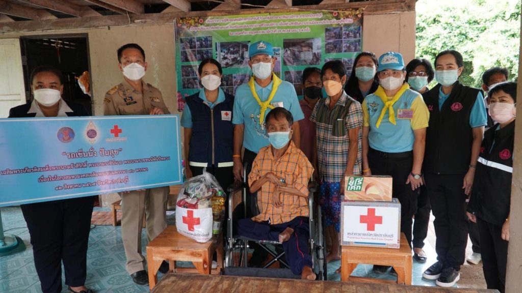สุวัณณุสส์ นายกเหล่ากาชาดจังหวัดปราจีนบุรี เป็นประธานในโครงการ “รถเข็นนั่ง ปันสุข” เพื่อเฉลิมพระเกียรติสมเด็จพระนางเจ้าสิริกิติ์ พระบรมราชินีนาถ พระบรมราชชนนีพันปีหลวง เนื่องในโอกาสมหามงคลเฉลิมพระชนมพรรษา 90 พรรษา 12 สิงหาคม 2565 เพื่อช่วยเหลือด้านสังคมสงเคราะห์แก่ประชาชนที่ขาดแคลนกำลังทรัพย์และมีความบกพร่องหรือไม่สะดวกในการเคลื่อนไหว จากฐานข้อมูลในระบบ TPMAP และ ThaiQM จำนวน 2 ราย โดยมี นายอําเภอกบินทร์บุรี ปลัดอำเภอกบินทร์บุรี หัวหน้าส่วนราชการ ผู้นำท้องที่ ท้องถิ่นและประชาชนเข้าร่วมพิธี ในการนี้ นายวรพันธุ์ สุวัณณุสส์ ผู้ว่าราชการจังหวัดปราจีนบุรี/ประธานในพิธี พร้อมด้วย นางมัทนา สุวัณณุสส์ นายกเหล่ากาชาดจังหวัดปราจีนบุรี ได้มอบ ชุดอุปโภค บริโภค จำนวน 1 ชุด นมแลคตาซอย จำนวน 1 ลัง ขนมยูโร่ จำนวน 1 กล่อง เพื่อเป็นขวัญและกำลังใจด้วย