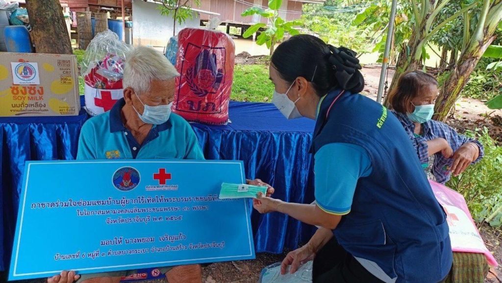 วันที่ 16 สิงหาคม 2565 นางมัทนา สุวัณณุสส์ นายกเหล่ากาชาดจังหวัดปราจีนบุรี พร้อมด้วย นางจารุณี กาวิล หัวหน้าสำนักงานจังหวัดปราจีนบุรี นางสาววงเดือน ใช้ได้สุก ตรวจสอบภายในจังหวัดปราจีนบุรี พ.อ.สุรวิชญ์ แดงจันทร์ รอง.ผอ กอ.รมน.ปราจีนบุรี ผู้แทนพัฒนาสังคมและความมั่นคงของมนุษย์จังหวัดปราจีนบุรี ผู้แทนสำนักงานป้องกันและบรรเทาสาธารณภัยจังหวัดปราจีนบุรี หัวหน้าสำนักงานบ้านพักเด็กและครอบครัวจังหวัดปราจีนบุรี ผู้แทนสาธารณสุขจังหวัดปราจีนบุรี นายเสฏฐวุฒิ วงศ์เลอวุฒิ นายอำเภอบ้านสร้าง ปลัดอำเภอบ้านสร้าง หัวหน้าส่วนราชการ กรรมการและสมาชิกเหล่ากาชาดจังหวัดปราจีนบุรี จิตอาสา เจ้าหน้าที่ และประชาชน ร่วมพิธีมอบบ้านให้กับผู้ยากไร้ และด้อยโอกาส (ตกเกณฑ์มิติด้านความเป็นอยู่ตามเกณฑ์ของศูนย์ขจัดความยากจนและพัฒนาคนทุกช่วงวัยฯ ) จำนวน 1 หลัง ต.บางกระเบา อ.บ้านสร้าง จ.ปราจีนบุรี ตามโครงการ กาชาดรวมใจซ่อมบ้านผู้ยากไร้เทิดไท้เฉลิมพระเกียรติ เนื่องในโอกาสมหามงคลเฉลิมพระชนมพรรษา 90 พรรษา สมเด็จพระนางเจ้าสิริกิติ์ พระบรมราชินีนาถ พระบรมราชชนนีพันปีหลวง จังหวัดปราจีนบุรี ปี พ.ศ. 2565 โดยมี นายวรพันธุ์ สุวัณณุสส์ ผู้ว่าราชการจังหวัดปราจีนบุรี เป็นประธานในพิธี ซึ่งในการซ่อมแซมบ้านครั้งนี้ ได้รับการสนับสนุนงบประมาณจากเหล่ากาชาดจังหวัดปราจีนบุรี จำนวน 1 หลัง จำนวนเงิน 30,000 บาท พร้อมนี้ ผู้ว่าราชการจังหวัดปราจีนบุรี และคณะ ได้มอบสิ่งของเครื่องใช้ ดังนี้