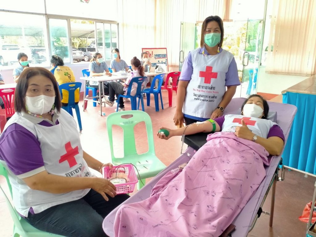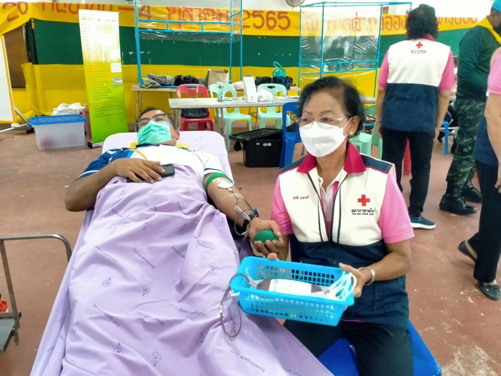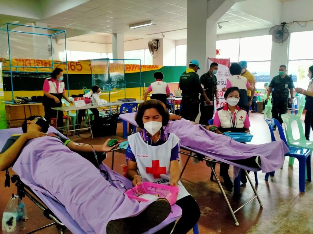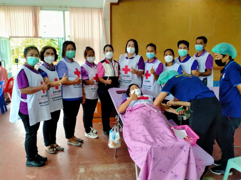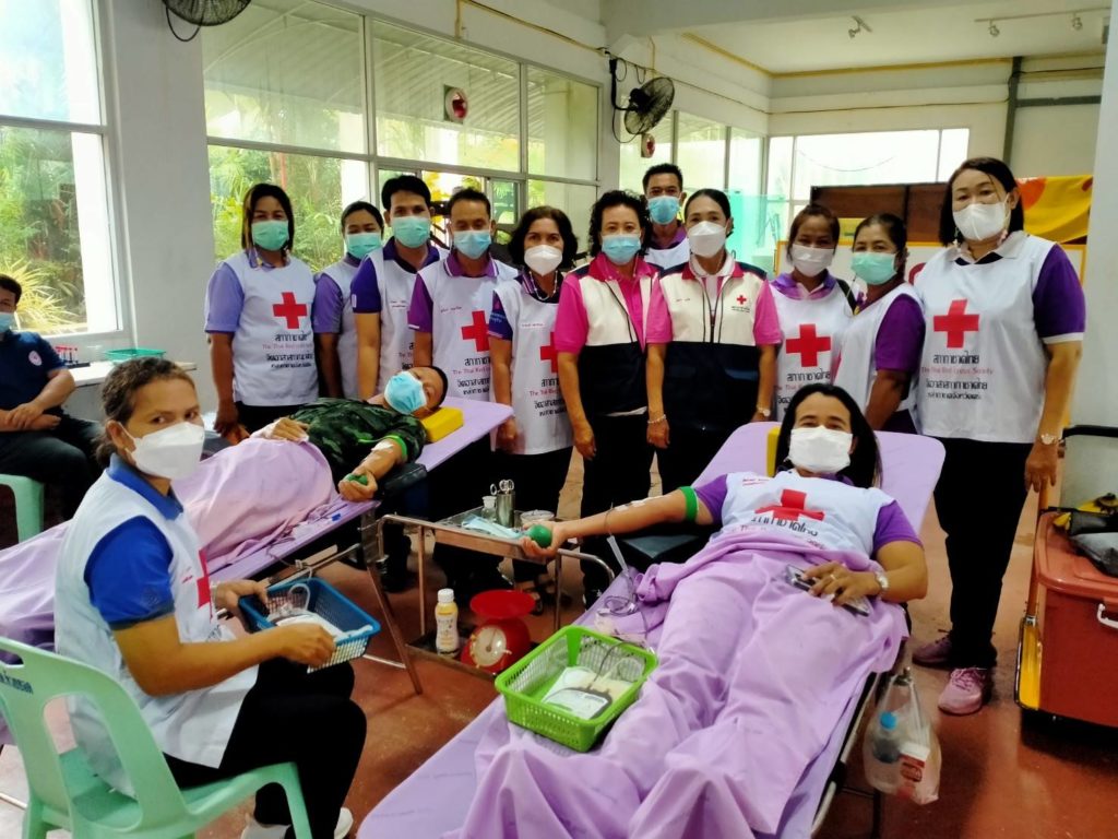วันที่ 6 กันยายน 2565 นางละมัย เจริญโสภา นายกเหล่ากาชาดจังหวัดตรัง มอบหมายนางมินตรา อรทัย รองนายกเหล่ากาชาดจังหวัดตรังพร้อมด้วยคณะกรรมการเหล่ากาชาด สมาชิก เจ้าหน้าที่ และจิตอาสาสภาากาชาดไทย ร่วมกับธนาคารเลือดโรงพยาบาลตรัง ออกหน่วยรับบริจาคโลหิต ดวงตา และอวัยวะ ณ ศาลาประชาคม อำเภอห้วยยอด จังหวัดตรัง โดยมีนายสำคัญ อรทัย นายอำเภอห้วยยอด นำบุคคลากรร่วมบริจาคโลหิตด้วยสำหรับวันนี้ มีผู้บริจาคทั้งหมด 90 ราย ได้โลหิต 76 ยูนิต คิดเป็นปริมาณ 30,400 ซีซี. มีผู้แสดงความจำนงบริจาคดวงตา จำนวน 9 ราย และผู้แสดงความจำนงบริจาคอวัยวะ 9 ราย พร้อมมอบหน้ากากอนามัยกับสายคล้องคอ 76 ชิ้น