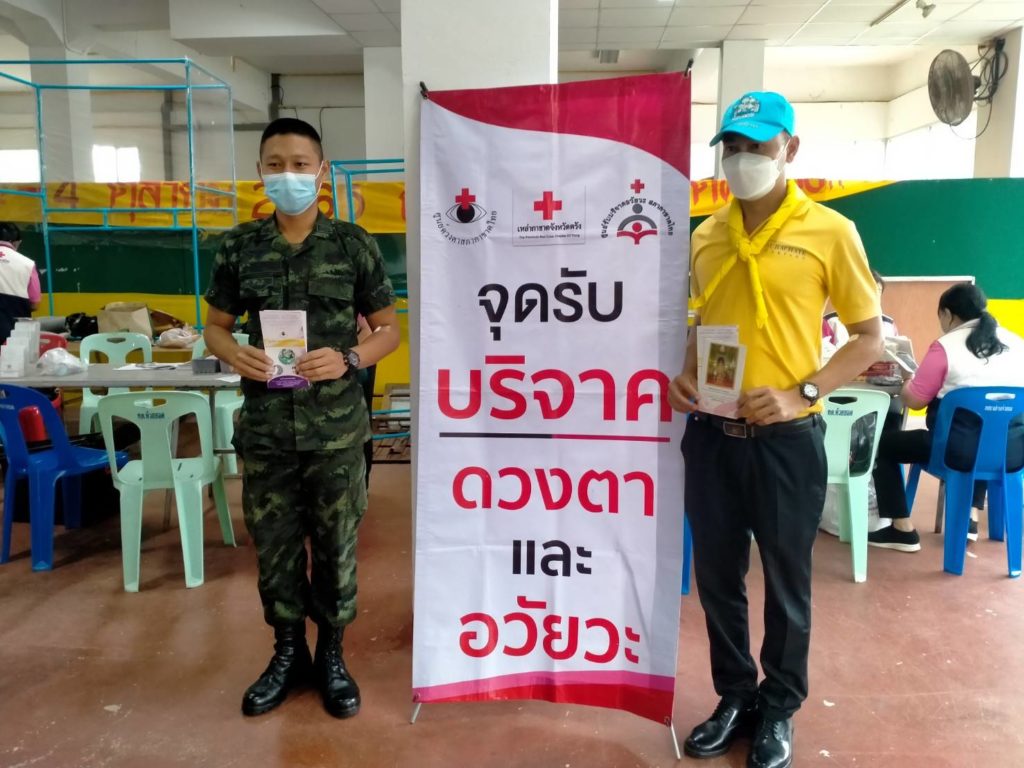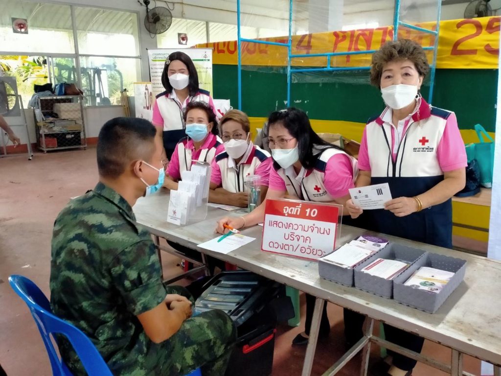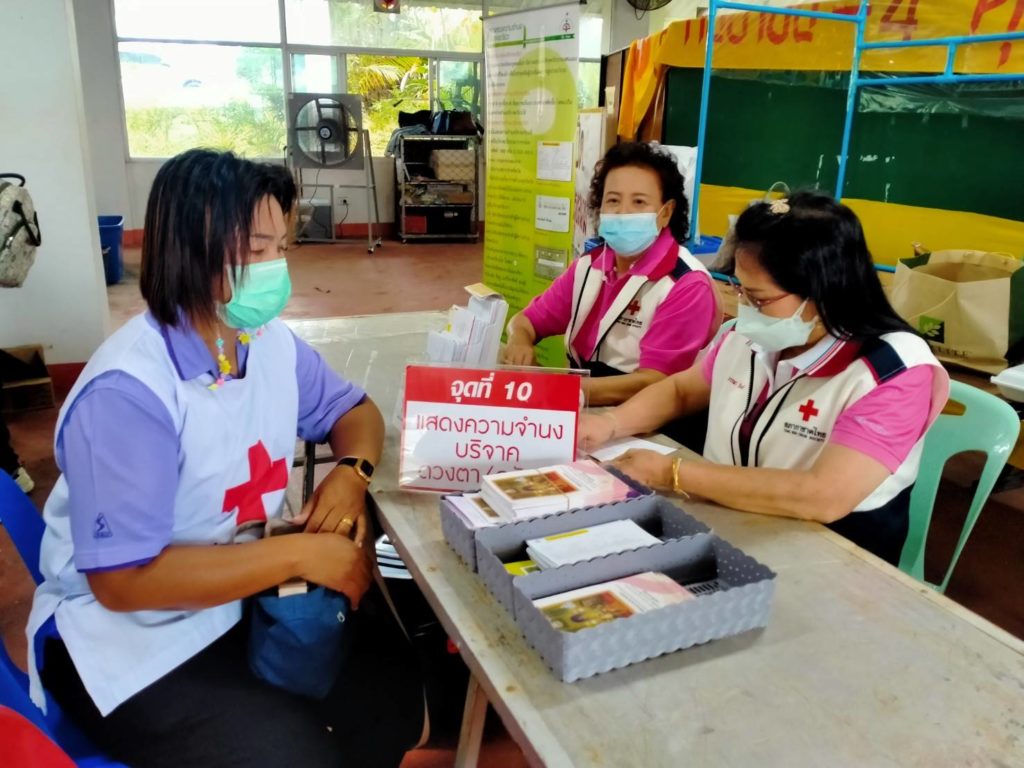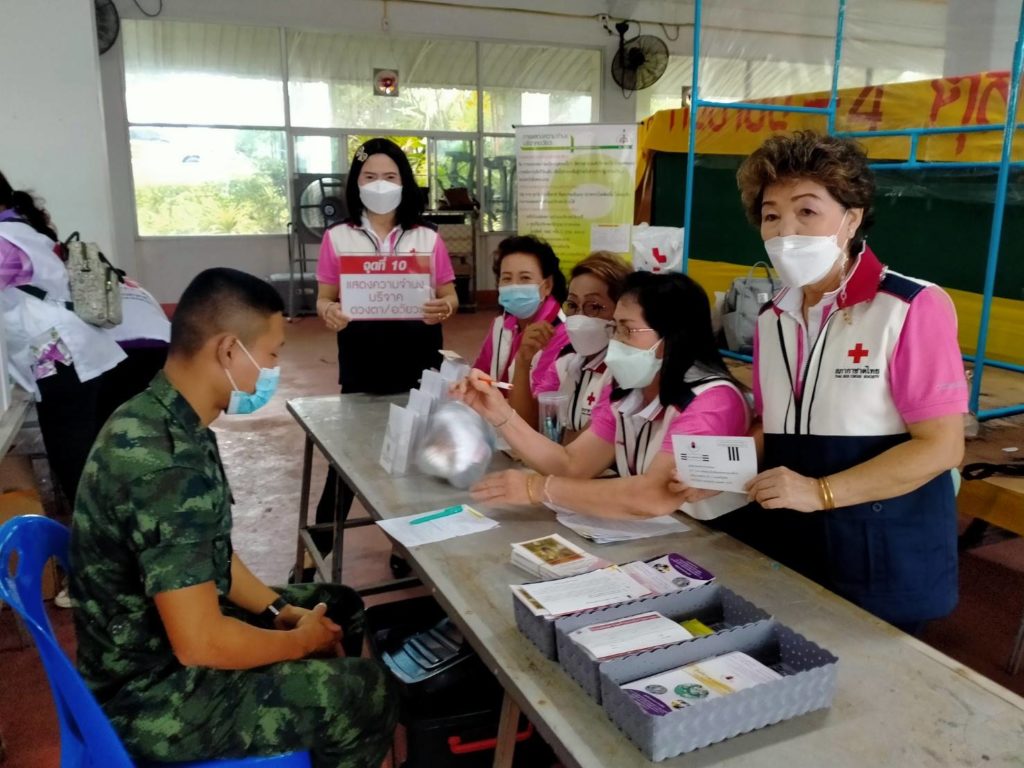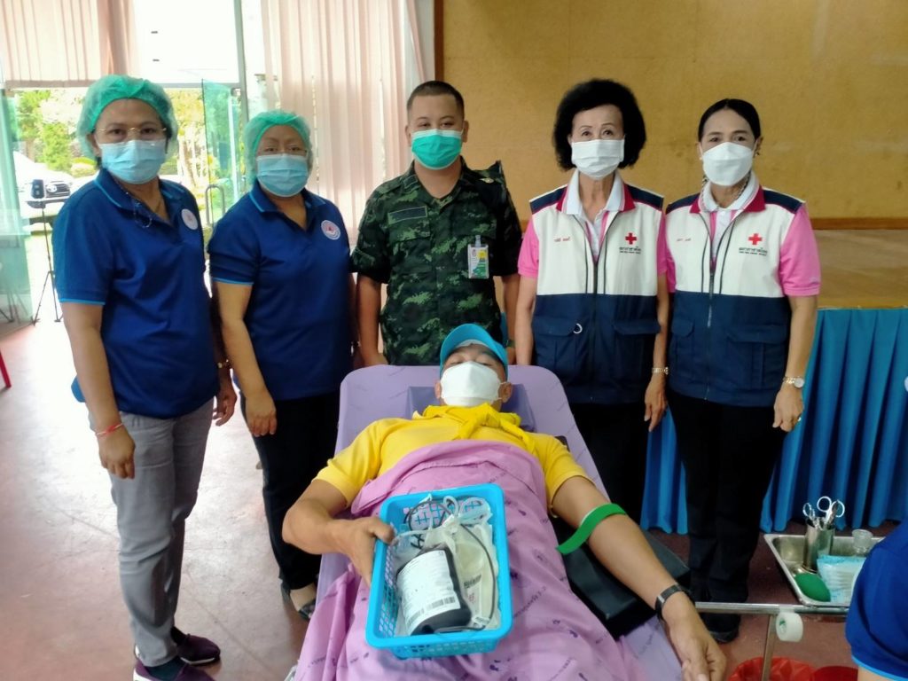 วันที่ 6 กันยายน 2565 นางละมัย เจริญโสภา นายกเหล่ากาชาดจังหวัดตรัง มอบหมายนางมินตรา อรทัย รองนายกเหล่ากาชาดจังหวัดตรังพร้อมด้วยคณะกรรมการเหล่ากาชาด สมาชิก เจ้าหน้าที่ และจิตอาสาสภาากาชาดไทย ร่วมกับธนาคารเลือดโรงพยาบาลตรัง ออกหน่วยรับบริจาคโลหิต ดวงตา และอวัยวะ ณ ศาลาประชาคม อำเภอห้วยยอด จังหวัดตรัง โดยมีนายสำคัญ อรทัย นายอำเภอห้วยยอด นำบุคคลากรร่วมบริจาคโลหิตด้วยสำหรับวันนี้ มีผู้บริจาคทั้งหมด 90 ราย ได้โลหิต 76 ยูนิต คิดเป็นปริมาณ 30,400 ซีซี. มีผู้แสดงความจำนงบริจาคดวงตา จำนวน 9 ราย และผู้แสดงความจำนงบริจาคอวัยวะ 9 ราย พร้อมมอบหน้ากากอนามัยกับสายคล้องคอ 76 ชิ้น