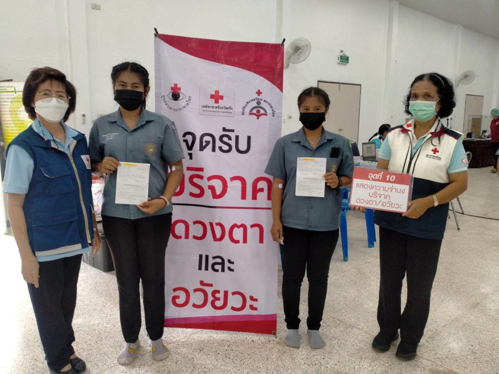 วันที่ 2 กันยายน 2565 นางละมัย เจริญโสภา นายกเหล่ากาชาดจังหวัดตรัง มอบหมายนางวาลินี ธนทวี หัวหน้าพันธกิจรับบริจาคโลหิต ดวงตา และอวัยวะ พร้อมด้วยคณะกรรมการ สมาชิก เจ้าหน้าที่ และจิตอาสาสมัครกาชาดไทยร่วมกับธนาคารเลือดโรงพยาบาลตรัง ออกหน่วยรับบริจาคโลหิต ดวงตา และอวัยวะ ณ วิทยาลัยเกษตรและเทคโนโลยีตรัง มีผู้บริจาคทั้งหมด 52 ราย ได้โลหิต 38 ยูนิต คิดเป็นปริมาณ 15,200 ซีซี. มีผู้แสดง ความจำนงบริจาคดวงตา จำนวน 23 ราย และผู้แสดงความจำนงบริจาคอวัยวะ 23 ราย พร้อมมอบหน้ากากอนามัยจำนวน 38 ชิ้น โดยขอบคุณคุณจิตรบดา ศรีเลิศวงศ์ บริจาคสิ่งของเป็นสี่ระลึกแก่ผู้บริจาคอวัยวะและดวงตาด้วย