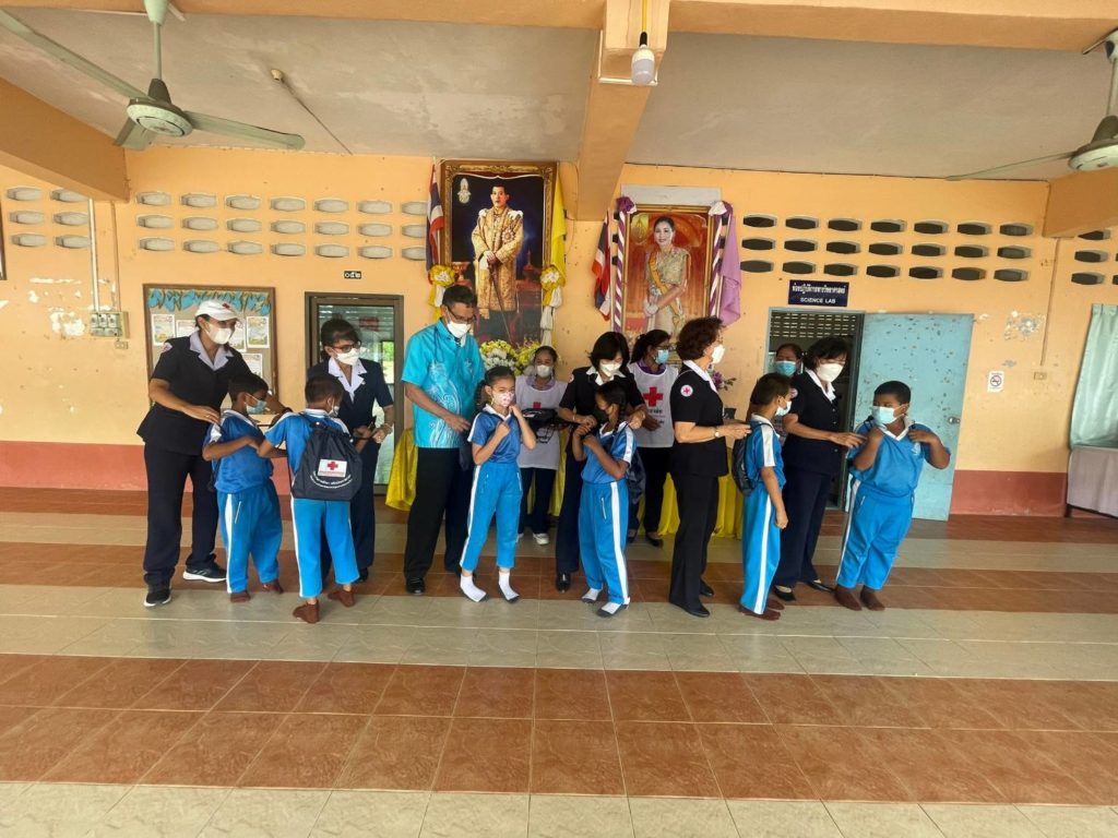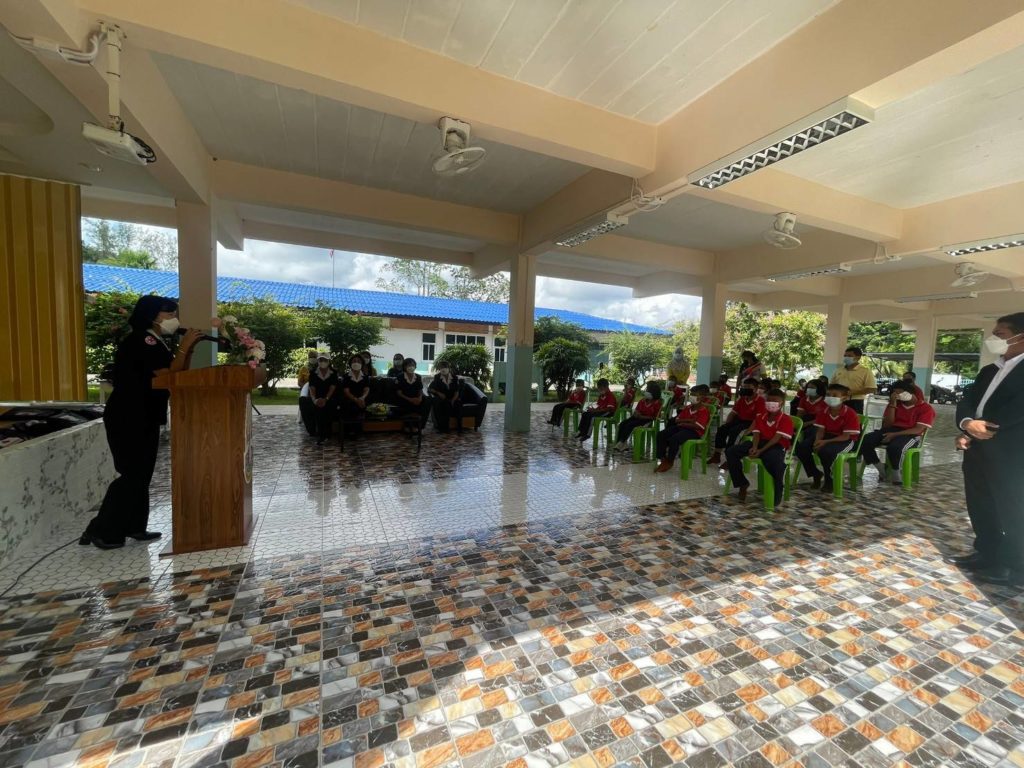 วันที่ 31 สิงหาคม 2565 นางละมัย เจริญโสภา นายกเหล่ากาชาดจังหวัดตรัง มอบหมายนางลักษณาพร อนันต์วรปัญญา รองนายกเหล่ากาชาดจังหวัดตรัง พร้อมด้วยคณะกรรมการ และสมาชิกเหล่ากาชาดจังหวัดตรัง และจิตอาสาสภากาชาดไทย ลงพื้นที่เยี่ยมและมอบถุงยังชีพเพื่อการศึกษา เสริมปัญญาเยาวชนแก่โรงเรียนกลุ่มเป้าหมาย ตามโครงการส่งเสริมและพัฒนาการพูด อ่าน เขียนภาษาไทย เพื่อมอบให้เด็กนักเรียนที่อ่านไม่ออกเขียนไม่ได้ ณ โรงเรียนนาเกลือ อำเภอกันตัง จังหวัดตรัง ณ โรงเรียนห้วยยอด(กลึงวิทยาคาร) โรงเรียนวัดเขาและโรงเรียนบ้านวังลำ อำเภอห้วยยอด จังหวัดตรัง
