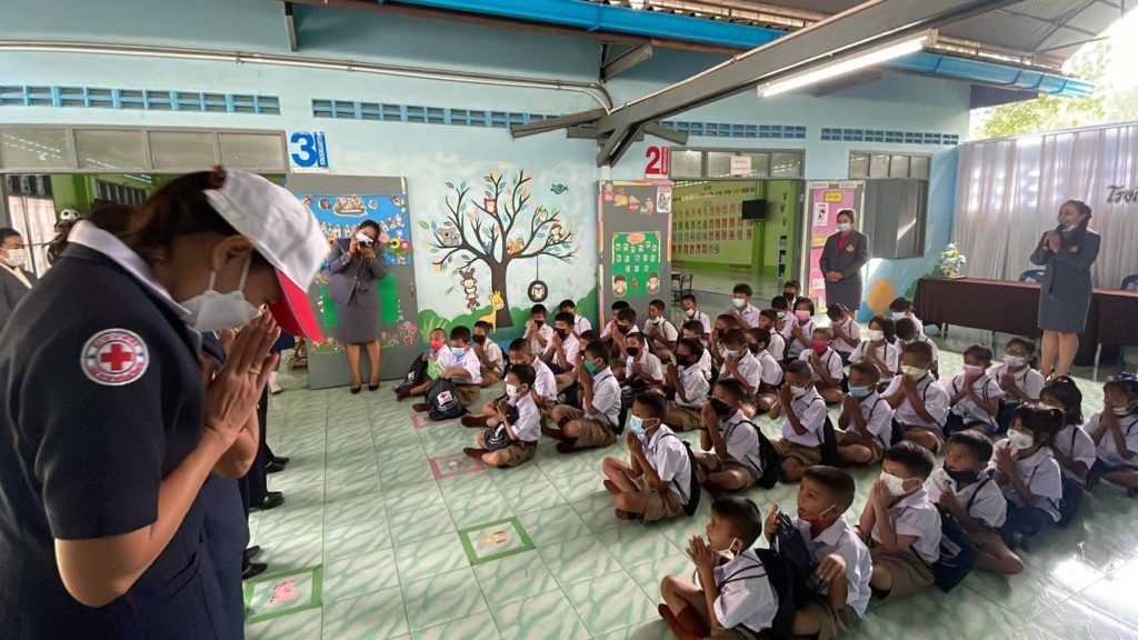 วันที่ 19 สิงหาคม 2565 นางละมัย เจริญโสภา นายกเหล่ากาชาดจังหวัดตรัง มอบหมายนางลักษณาพร อนันต์วรปัญญาและนางมินตรา อรทัย รองนายกเหล่ากาชาดจังหวัดตรัง พร้อมกับคณะกรรมการและสมาชิกเหล่ากาชาดจังหวัดตรัง ลงพื้นที่เยี่ยมและมอบถุงยังชีพเพื่อการศึกษา เสริมปัญญาเยาวชนแก่โรงเรียนกลุ่มเป้าหมาย ตามโครงการส่งเสริมและพัฒนาการพูด อ่าน เขียนภาษาไทย เพื่อมอบให้เด็กนักเรียนที่อ่านไม่ออกเขียนไม่ได้ ณ โรงเรียนควนอินทนินงาม โรงเรียนบ้านโคกทราย โรงเรียนโพรงจระเข้ อำเภอย่านตาขาว โรงเรียนวัดธรรมารามและโรงเรียนบ้านหนองไทร อำเภอนาโยง จังหวัดตรัง