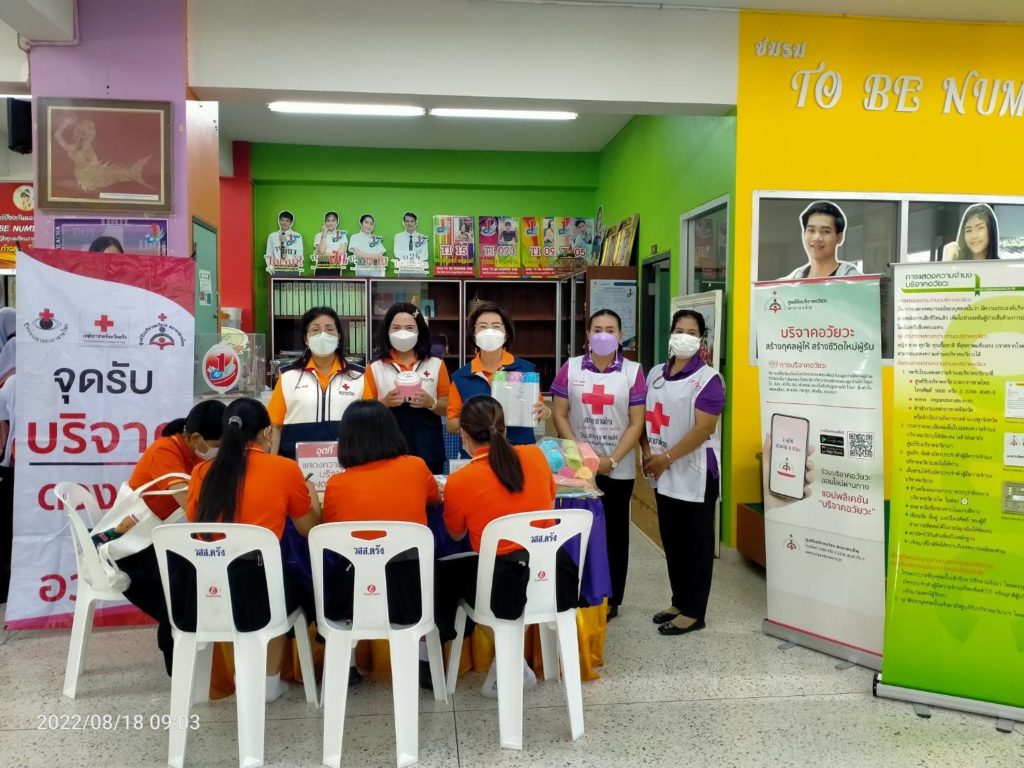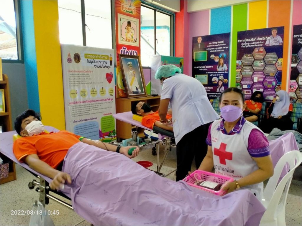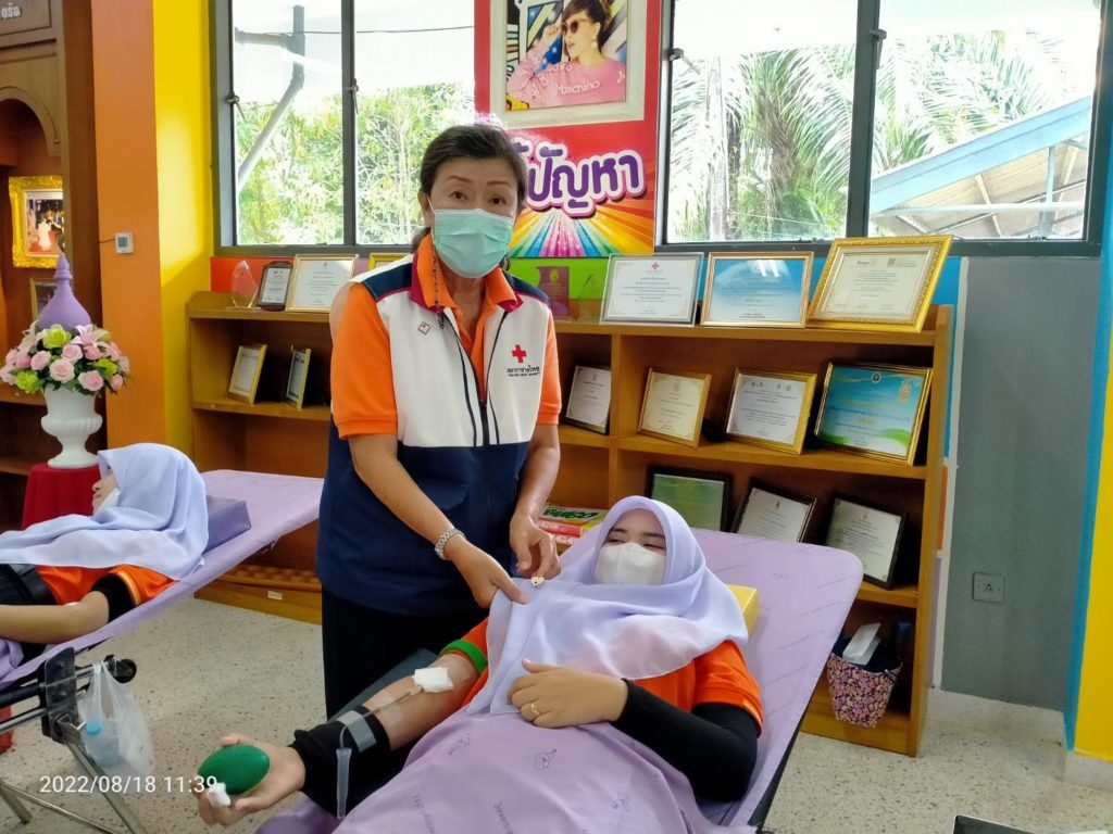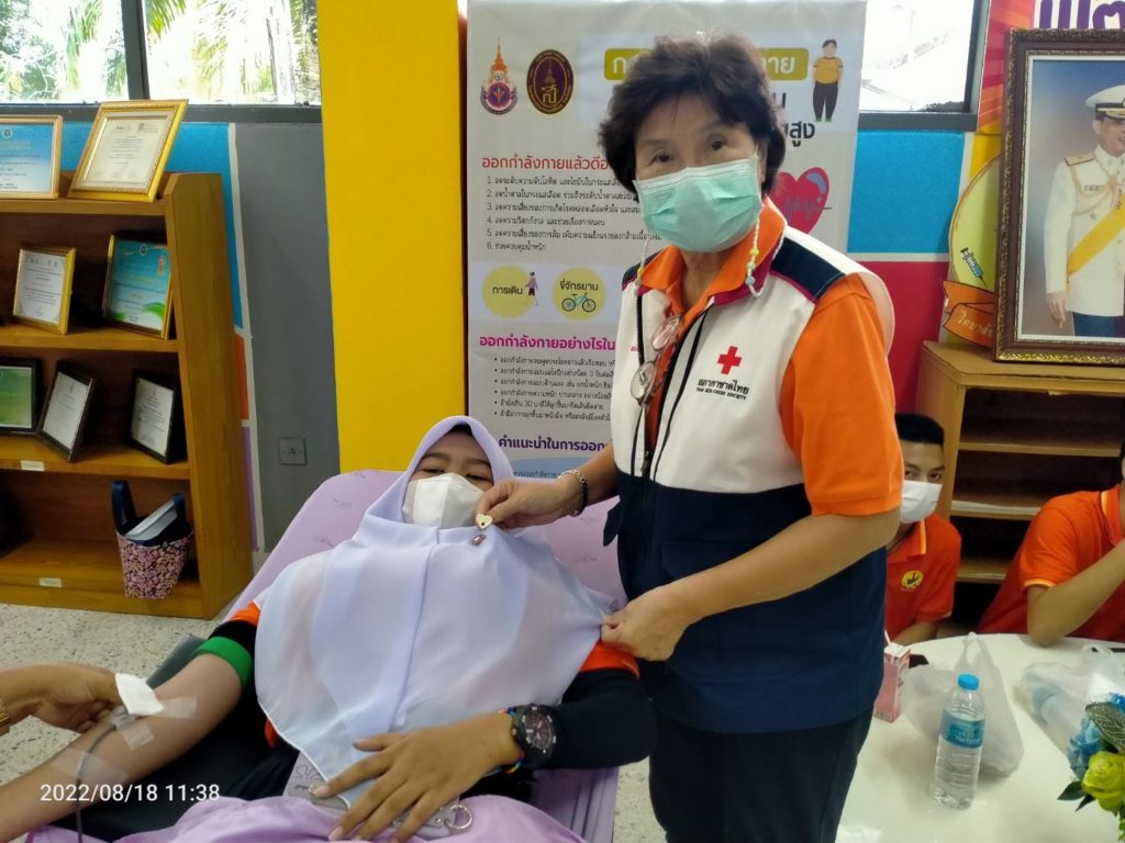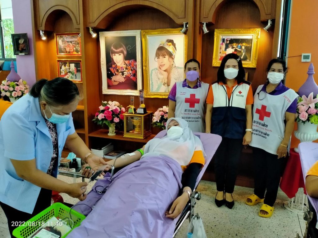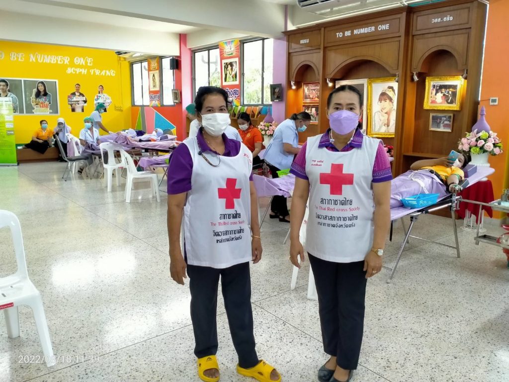 วันที่ 18 สิงหาคม 2565 นางละมัย เจริญโสภา นายกเหล่ากาชาดจังหวัดตรัง มอบหมายนางวาลินี ธนทวี หัวหน้าพันธกิจรับบริจาคโลหิต ดวงตา และอวัยวะ พร้อมด้วยคณะกรรมการ สมาชิก เจ้าหน้าที่ และจิตอาสาสมัครกาชาดไทยร่วมกับธนาคารเลือดโรงพยาบาลตรัง ออกหน่วยรับบริจาคโลหิต ดวงตา และอวัยวะ ณ วิทยาลัยสาธารณสุขสิรินธรตรัง โดยมีนายไพบูลย์ ชาวสวนศรีเจริญ ผู้อำนวยการวิทยาลัยสาธารณสุขสิรินธิรตรัง นำบุคคลากรร่วมบริจาคโลหิตด้วยสำหรับวันนี้ มีผู้บริจาคทั้งหมด 134 ราย ได้โลหิต 100 ยูนิต คิดเป็นปริมาณ 40,000 ซีซี. มีผู้แสดงความจำนงบริจาคดวงตา จำนวน 28 ราย และผู้แสดงความจำนงบริจาคอวัยวะ 27 ราย พร้อมมอบหน้ากากอนามัยจำนวน 100 ชิ้น
