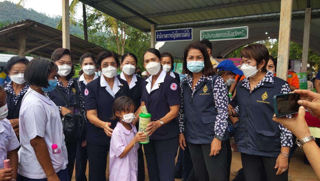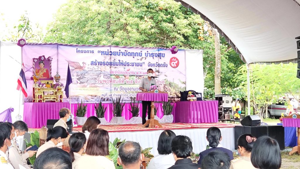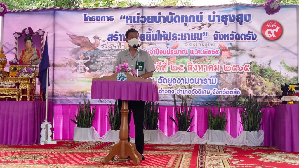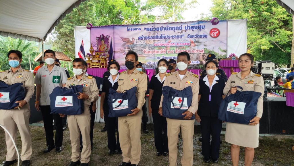 วันที่ 25 สิงหาคม 2566 นางละมัย เจริญโสภา นายกเหล่ากาชาดจังหวัดตรัง มอบหมายนางมินตรา อรทัย รองนายกเหล่ากาชาดจังหวัดตรังพร้อมด้วยคณะกรรมการ และสมาชิกเหล่ากาชาดจังหวัดตรัง จิตอาสาสภากาชาดไทย ร่วมโครงการ “หน่วยบำบัดทุกข์ บำรุงสุข สร้างรอยยิ้มให้ประชาชน” จังหวัดตรัง และร่วมออกหน่วยแพทย์เคลื่อนที่ พอ.สว. ออกให้บริการประชาชน ออกให้บริการประชาชน สำนักสงฆ์บ้านยูงงาม ต.อ่าวตง อ.วังวิเศษ จ.ตรัง โดยมีนายขจรศักดิ์ เจริญโสภา ผู้ว่าราชการจังหวัดตรัง เป็นประธานในพิธี ในการนี้ เหล่ากาชาดจังหวัดตรัง มอบเครื่องอุปโภคบริโภคให้ผู้สูงอายุ ผู้พิการ และผู้ป่วยติดเตียง จำนวน 100 ชุด มอบแว่นสายตาให้ผู้สูงวัยและผู้ยากไร้จำนวน 60อัน จากนั้น ได้ออกเยี่ยมผู้ป่วยติดเตียงพร้อมมอบถุงยังชีพสถากาชาดไทยจำนวน 4 ราย