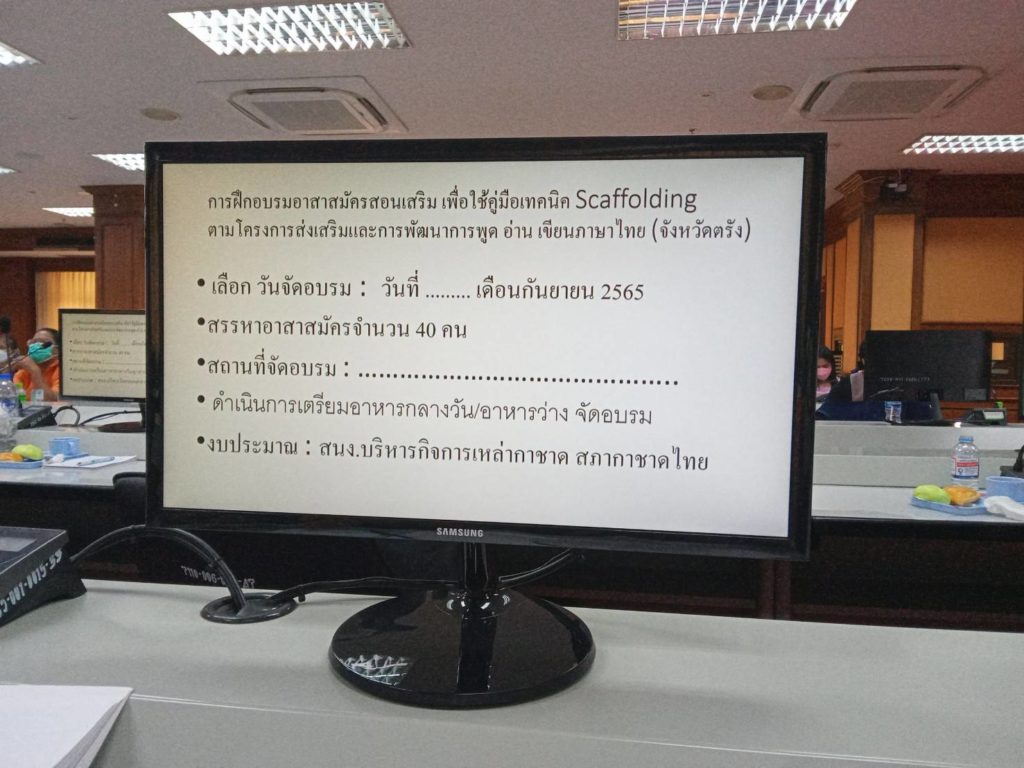 วันที่ 25 สิงหาคม 2565 นางละมัย เจริญโสภา นายกเหล่ากาชาดจังหวัดตรัง พร้อมด้วยนางลักษณาพร อนันต์วรปัญญา รองนายกเหล่ากาชาดจังหวัดตรัง คณะทำงานตามโครงการฯ กศน.ศึกษานิเทศน์ ศึกษานิเทศน์สำนักงานเขตการศึกษาประถมศึกษาเขต 2 ผู้อำนวยการและครูสอนภาษาไทยระดับชั้นป 2และป.3โรงเรียนกลุ่มเป้าหมายตามโครงการส่งเสริมและพัฒนาการพูด อ่าน เขียนภาษาไทย เข้าร่วมประชุมติดตามตรวจเยี่ยมโครงการส่งเสริมและพัฒนาการพูด อ่าน เขียนภาษาไทยในพื้นที่จังหวัดตรัง ณ ศาลากลางจังหวัดตรัง ห้องประชุมพระยารัษฎา ชั้น 5 โดยมีนายวิทยา จันทร์ฉลอง ผู้ช่วยผู้อำนวยการสำนักงานบริหารกิจการเหล่ากาชาด เป็นผู้ชี้แจงวัตถุประสงค์การติดตามตรวจเยี่ยมโครงการฯและแนวทางการขับเคลื่อนโครงการฯของสภากาชาดไทย
