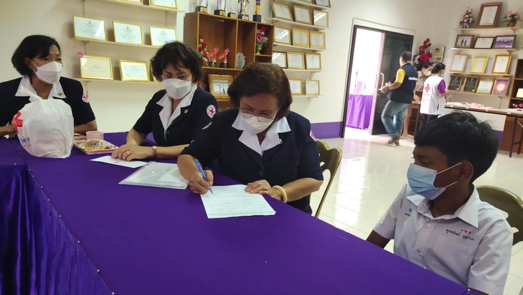 วันที่ 8 สิงหาคม 2565 นางละมัย เจริญโสภา นายกเหล่ากาชาดจังหวัดตรัง มอบหมายนางรัชนี ตันวิมลรัตน์ กรรมการฯเหล่ากาชาดจังหวัดตรังหัวหน้าพันธกิจที่ 6 (งานในพระราชดำริ) พร้อมกรรมการ สมาชิกและจิตอาสา สภากาชาดไทยออกเยี่ยมผู้ป่วยในพระบรมราชานุเคราะห์และพระราชานุเคราะห์ ในพื้นที่อำเภอนาโยงและอำเภอย่านตาขาว จำนวน 5 คน พร้อมเงินช่วยเหลือเบื้องต้น ดังนี้