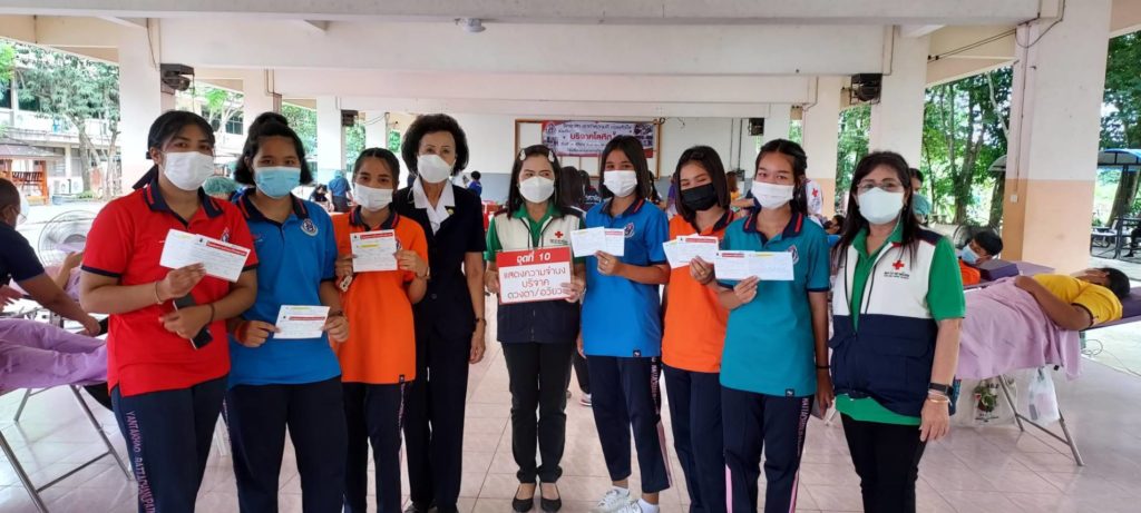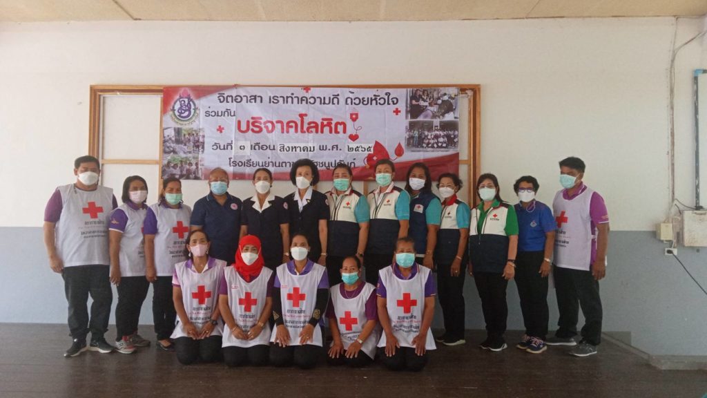 วันที่ 3 สิงหาคม 2565 นางละมัย เจริญโสภา นายกเหล่ากาชาดจังหวัดตรัง มอบหมายนางมินตรา อรทัย รองนายกเหล่ากาชาดจังหวัดตรัง พร้อมด้วยคณะกรรมการ สมาชิก เจ้าหน้าที่ และจิตอาสาสมัครกาชาดไทยร่วมกับธนาคารเลือดโรงพยาบาลตรัง ออกหน่วยรับบริจาคโลหิต ดวงตา และอวัยวะ ณ โรงเรียนย่านตาขาวรัฐชนูปถัมภ์ จังหวัดตรัง โดยมีนายภิญโญ จินตนปัญญา ผู้อำนวยการโรงเรียนย่านตาขาวรัฐชนูปถัมภ์ นำบุคคลากรร่วมบริจาคโลหิตด้วยสำหรับวันนี้ มีผู้บริจาคทั้งหมด 61 ราย ได้โลหิต 50 ยูนิต คิดเป็นปริมาณ 20,000 ซีซี. มีผู้แสดงความจำนงบริจาคดวงตา จำนวน 39 ราย และผู้แสดงความจำนงบริจาคอวัยวะ 48 ราย พร้อมมอบหน้ากากอนามัยจำนวน 50 ชิ้น
