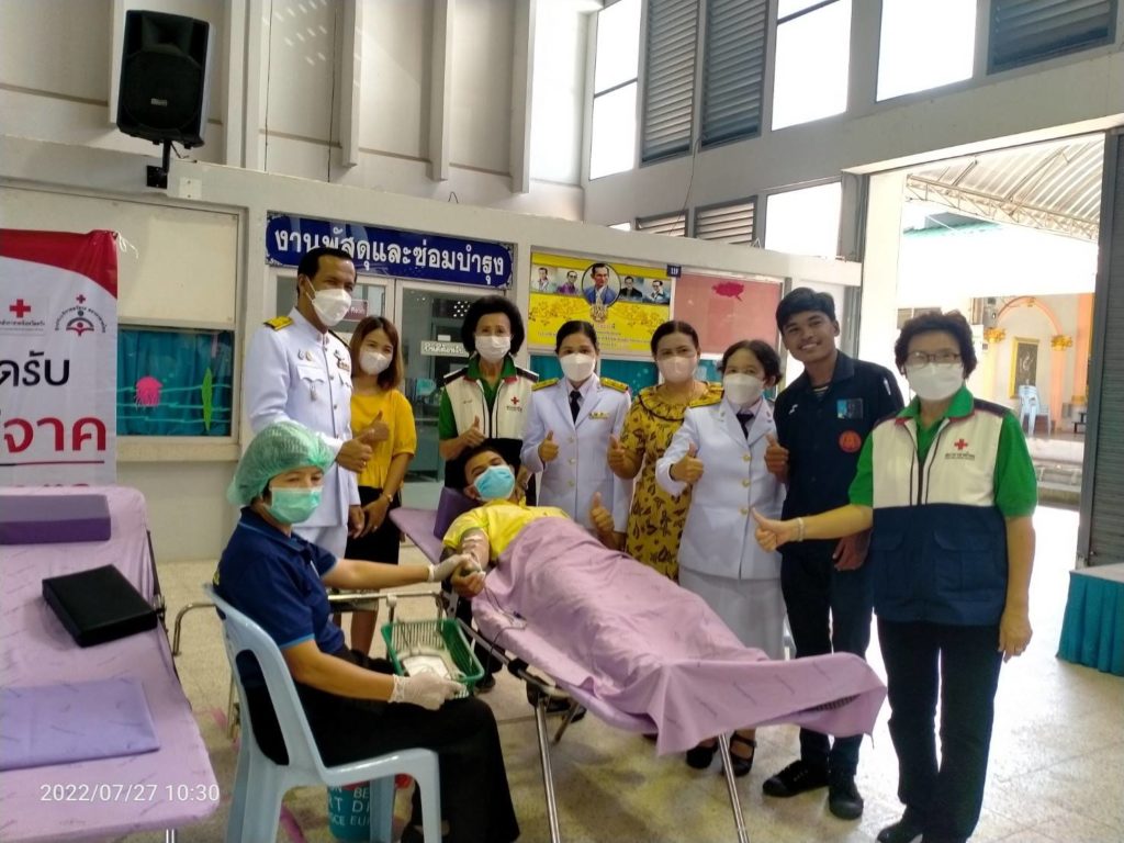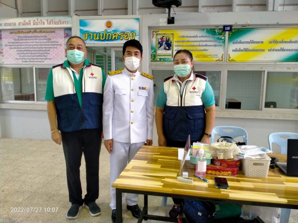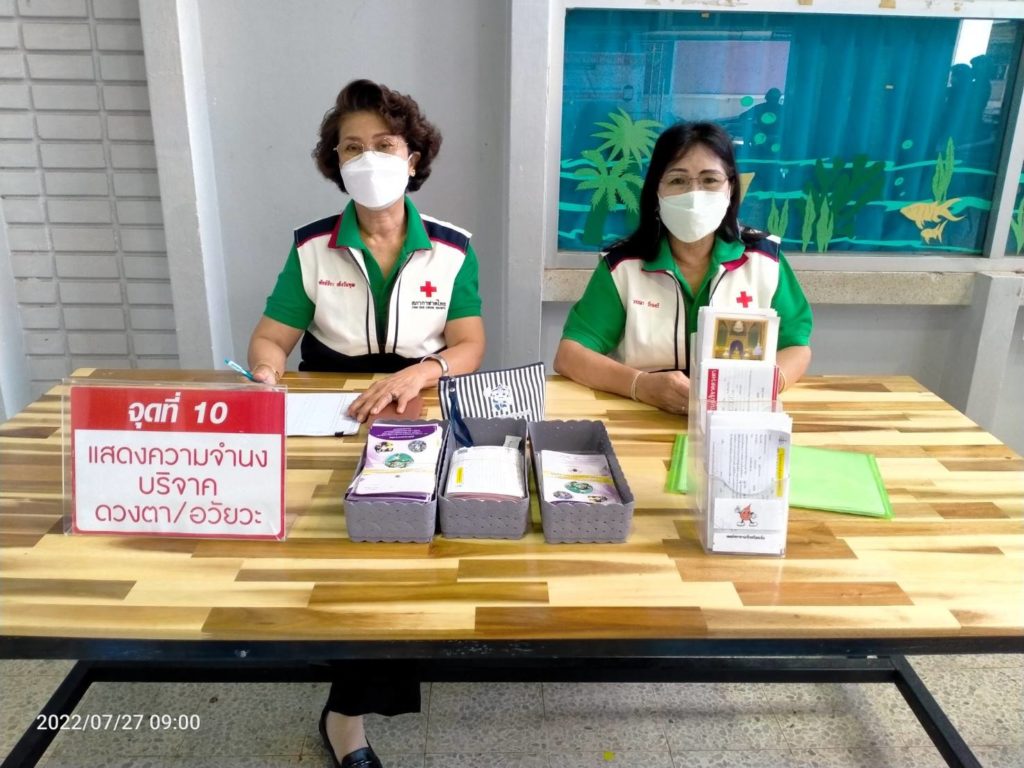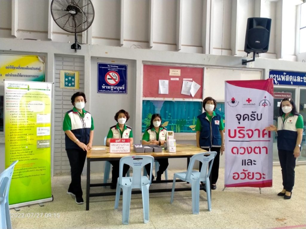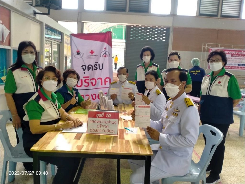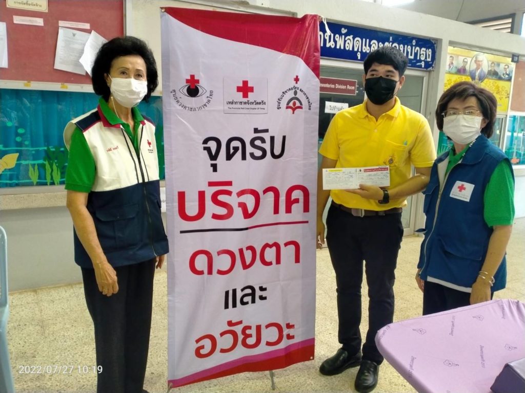 วันที่ 27 กรกฎาคม 2565 นางละมัย เจริญโสภา นายกเหล่ากาชาดจังหวัดตรัง มอบหมายนางวาลินี ธนทวี หัวหน้าพันธกิจที่ 3 พร้อมด้วยสมาชิก เจ้าหน้าที่ และจิตอาสาสภากาชาดไทย ร่วมกับธนาคารเลือดโรงพยาบาลตรัง ออกหน่วยรับบริจาคโลหิต ดวงตา และอวัยวะ ณ วิทยาลัยการอาชีพจังหวัดตรัง มีผู้บริจาคทั้งหมด 41 ราย บริจาคได้โลหิต 31 ยูนิต คิดเป็นปริมาณ 12,800 ซีซี. มีผู้แสดงความจำนงบริจาคดวงตา 24 ราย และผู้แสดงความจำนงบริจาคอวัยวะ 23 ราย พร้อมมอบหน้ากากอนามัยกับสายคล้องคอ 32 ชิ้น