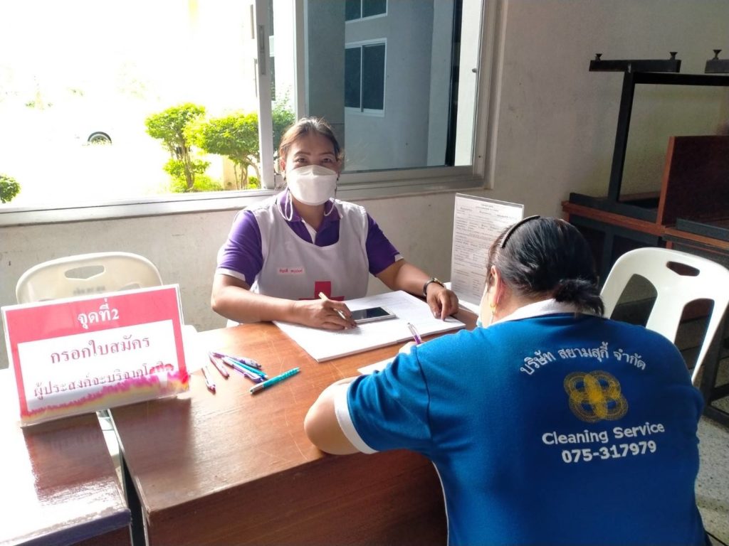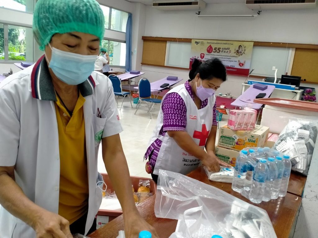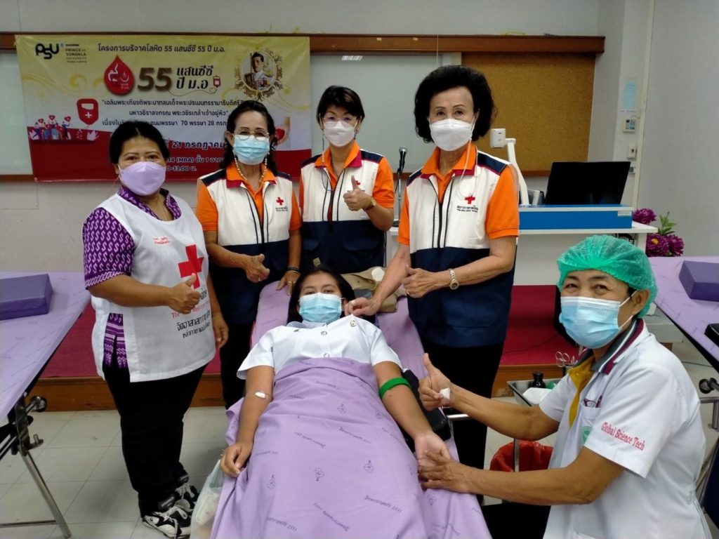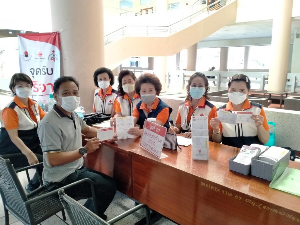วันที่ 21 กรกฎาคม 2565 นางละมัย เจริญโสภา นายกเหล่ากาชาดจังหวัดตรัง มอบหมายนางวาลินี ธนทวี หัวหน้าพันธกิจที่ 3 พร้อมด้วยสมาชิก เจ้าหน้าที่ และจิตอาสาสภากาชาดไทย ร่วมกับธนาคารเลือดโรงพยาบาลตรัง ออกหน่วยรับบริจาคโลหิต ดวงตา และอวัยวะ