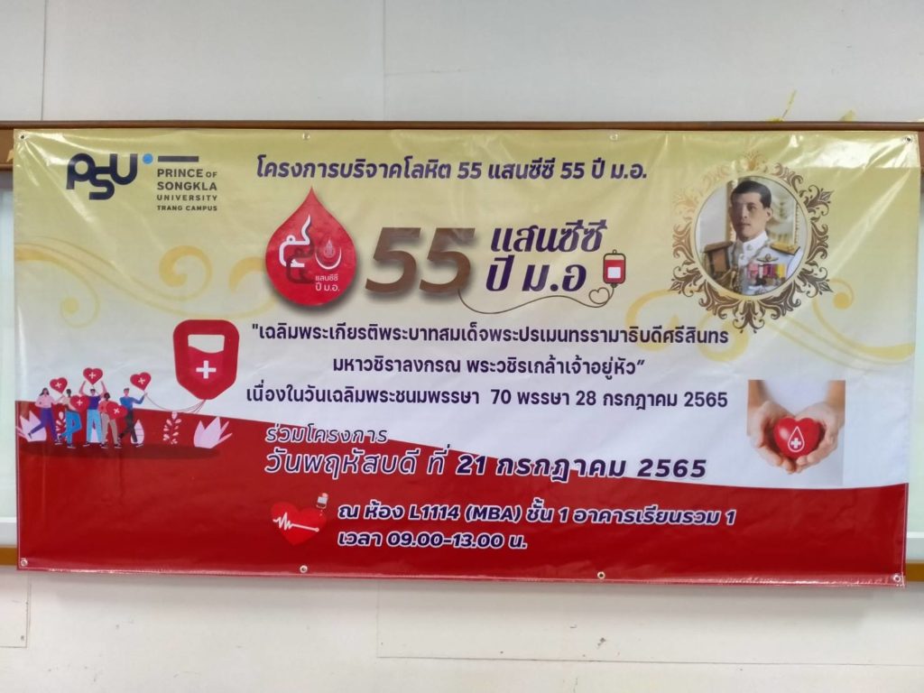 ณ มหาวิทยาลัยสงขลานครินทร์ วิทยาเขตตรัง มีผู้บริจาคทั้งหมด 70 ราย บริจาคได้โลหิต 58 ยูนิต คิดเป็นปริมาณ 23,200 ซีซี. มีผู้แสดง