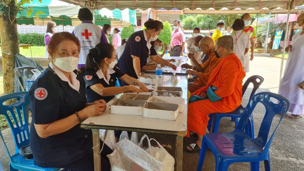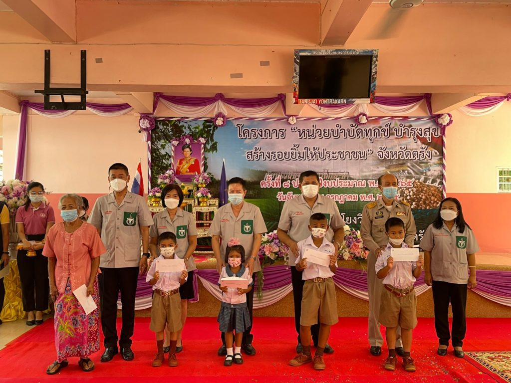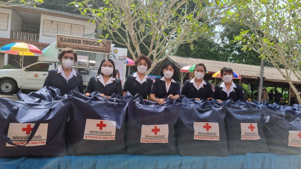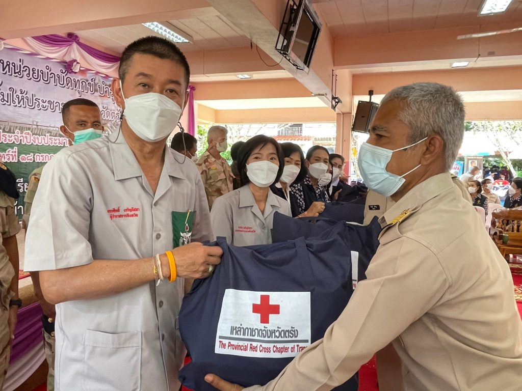 วันที่ 18 กรกฎาคม 2566 นางละมัย เจริญโสภา นายกเหล่ากาชาดจังหวัดตรัง พร้อมด้วยคณะกรรมการ และสมาชิกเหล่ากาชาดจังหวัดตรัง ร่วมโครงการ “หน่วยบำบัดทุกข์ บำรุงสุข สร้างรอยยิ้มให้ประชาชน” จังหวัดตรัง และร่วมออกหน่วยแพทย์เคลื่อนที่ พอ.สว. ออกให้บริการประชาชน ออกให้บริการประชาชน ณ โรงเรียนนาโยงวิทยา ต.โคกสะบ้า อ.นาโยง จ.ตรัง โดยมีนายขจรศักดิ์ เจริญโสภา ผู้ว่าราชการจังหวัดตรัง เป็นประธานในพิธี ในการนี้ เหล่ากาชาดจังหวัดตรัง มอบเครื่องอุปโภคบริโภคให้ผู้สูงอายุ ผู้พิการ และผู้ป่วยติดเตียง จำนวน 100 ชุด มอบแว่นสายตาให้ผู้สูงวัยและผู้ยากไร้จำนวน 196 อัน และมอบนมและขนมให้เด็กในพื้นที่